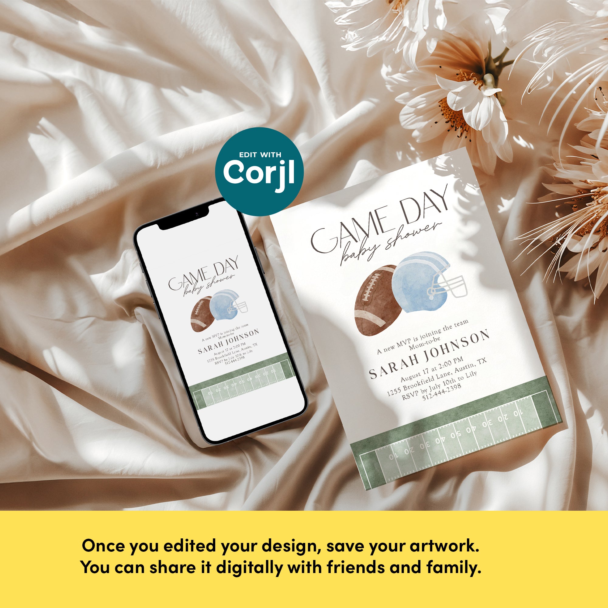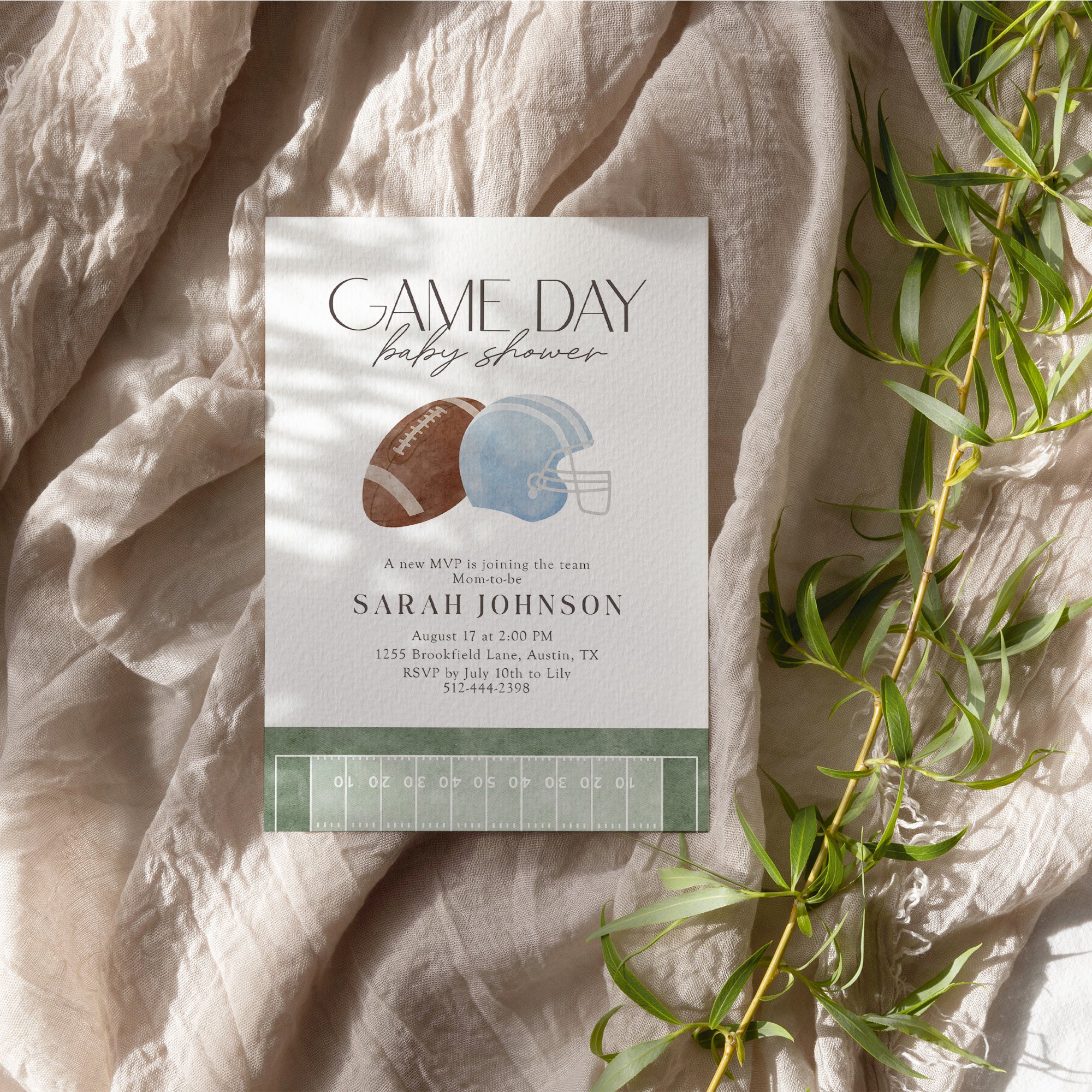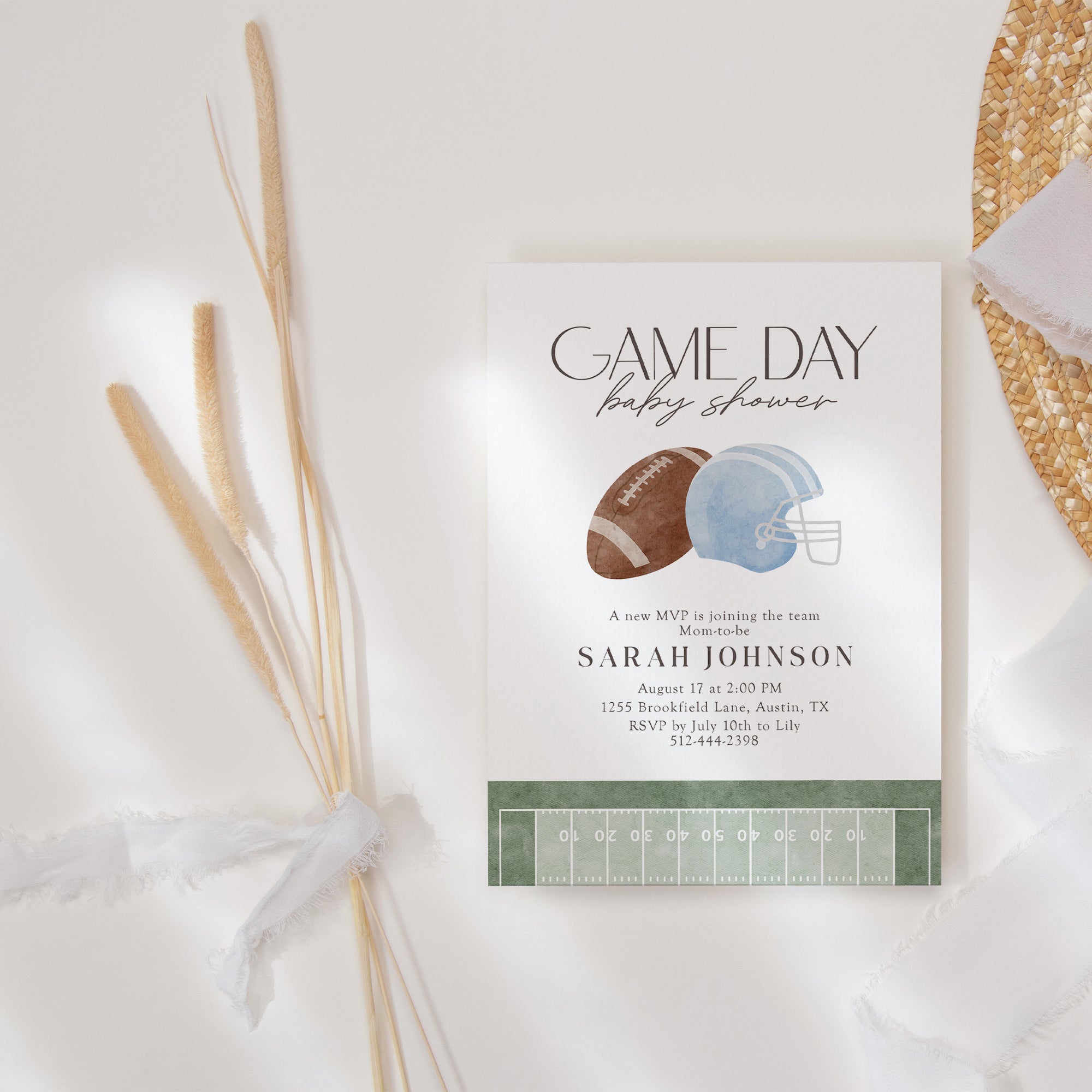 Celebrate your little MVP with our Blue Game Day Football Baby Boy Shower Invite! Perfect for a sports-themed baby shower, this digital download is an editable template that lets you customize details with ease. Just fill in your info, save, and print! Whether you're throwing a bash for family and friends or sending digital invites, this charming invite makes it easy to score big on style. Grab yours today and get ready for an unforgettable game day celebration!