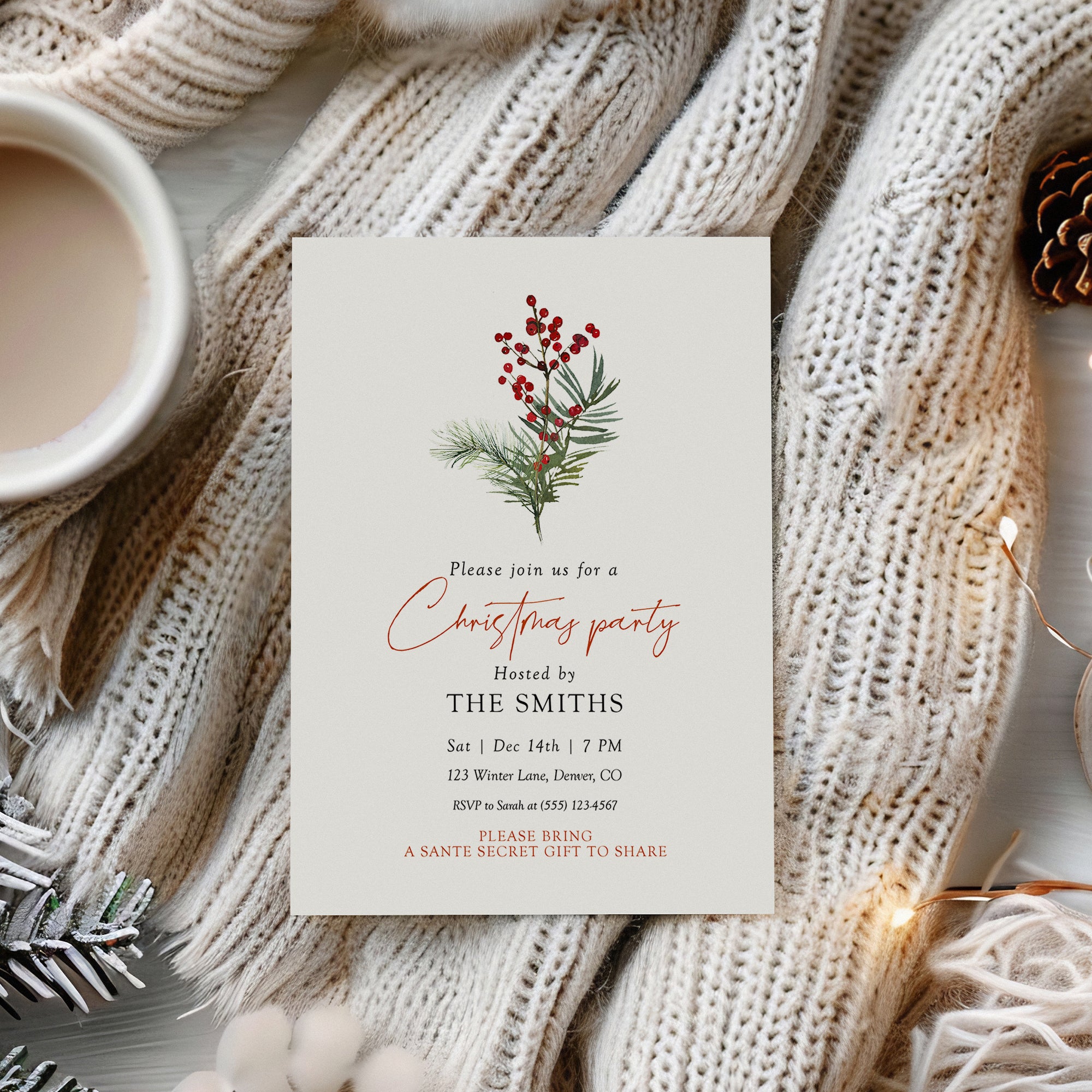 Elevate your holiday celebrations with our Greenery and Red Berries Christmas Dinner Party Invite! This elegant and modern design perfectly captures a minimalist winter vibe. Perfect for your Friendsmas gathering, this editable template allows you to personalize your invitations with ease. Simply download and print! Enjoy a stress-free planning experience and impress your guests with this stunning digital download. Celebrate in style this season!