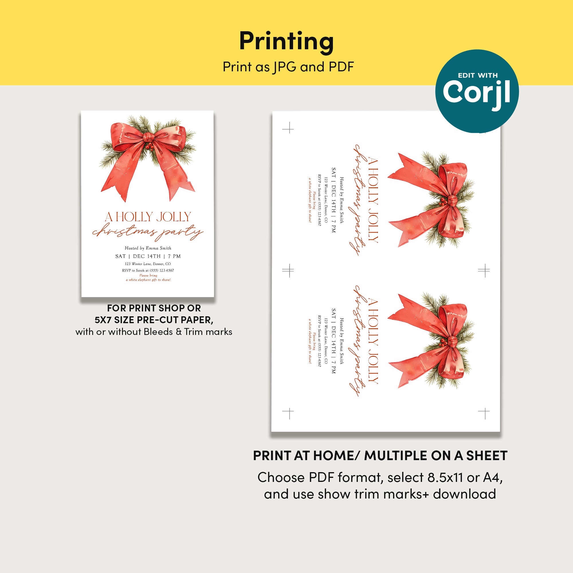 Celebrate the season with our Red Bow Christmas Party Invite! This editable holiday gathering template features a classic, minimal, and elegant design that perfectly captures the festive spirit. Ideal for coquette-style celebrations, this digital download allows you to customize all details for your special event. Simply edit, print, and send to your loved ones. Ready to make your holiday gathering unforgettable? Grab your Red Bow invite now and spread the cheer in style!