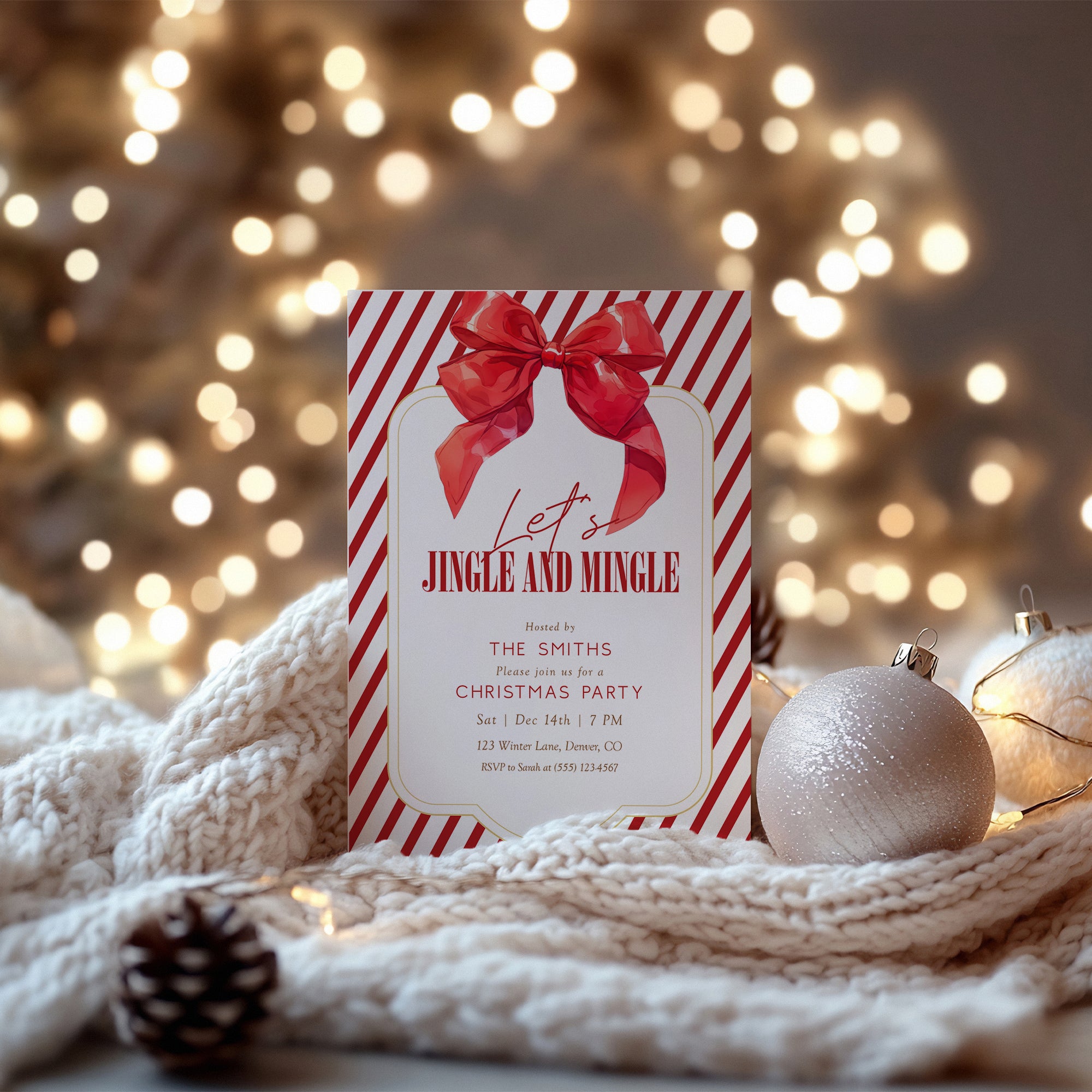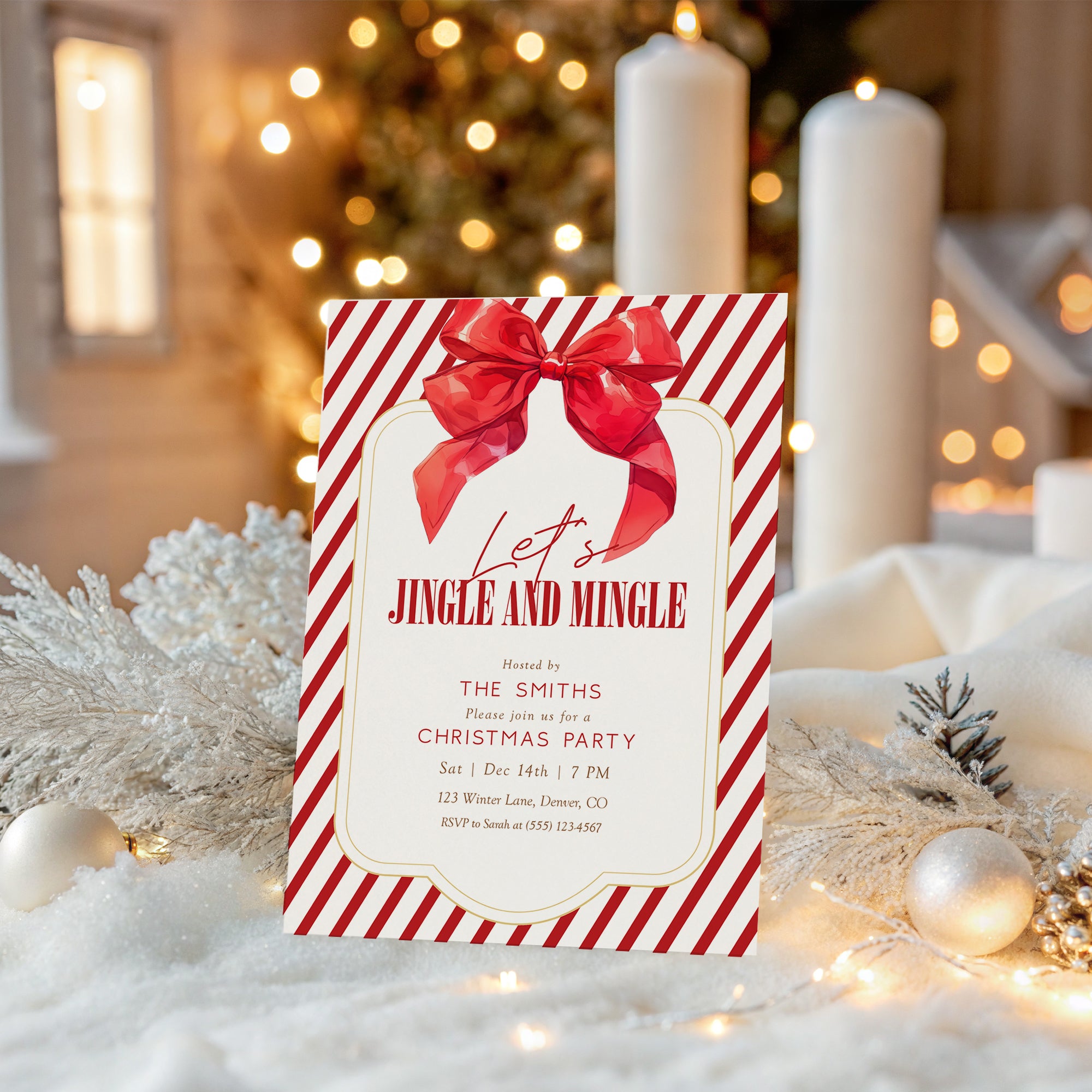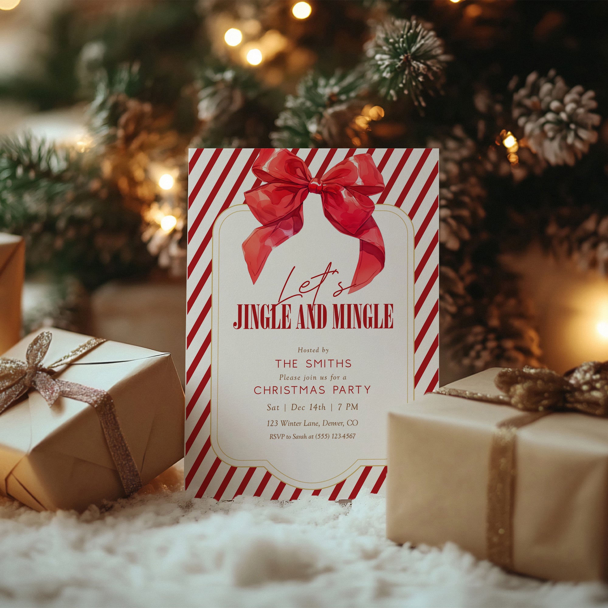 Celebrate the season with our Red Bow Coquette Christmas Invitation! Perfect for your Jingle and Mingle winter holiday party, this elegant invite sets the tone for a Merry Christmas dinner, brunch, or cocktail gathering. Download this stylish digital invitation instantly and spread holiday cheer at your festive celebration. Easy to customize and print, it’s the perfect way to invite your loved ones to join in the holiday fun. Get ready for a memorable winter gathering! 🎄✨