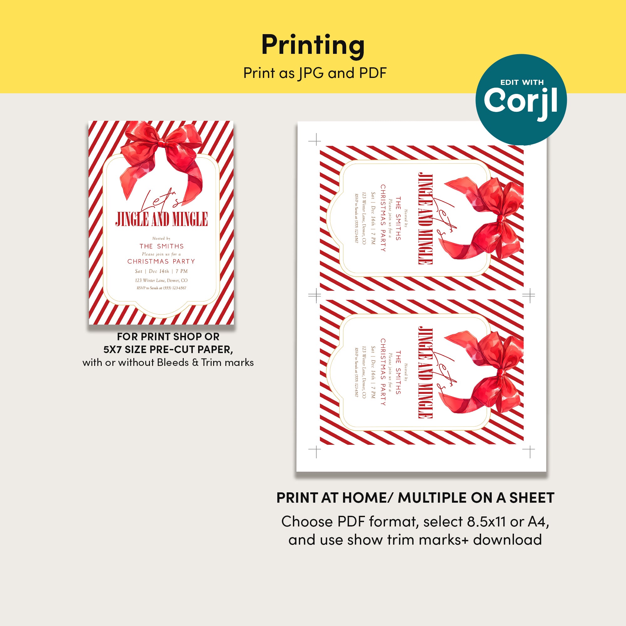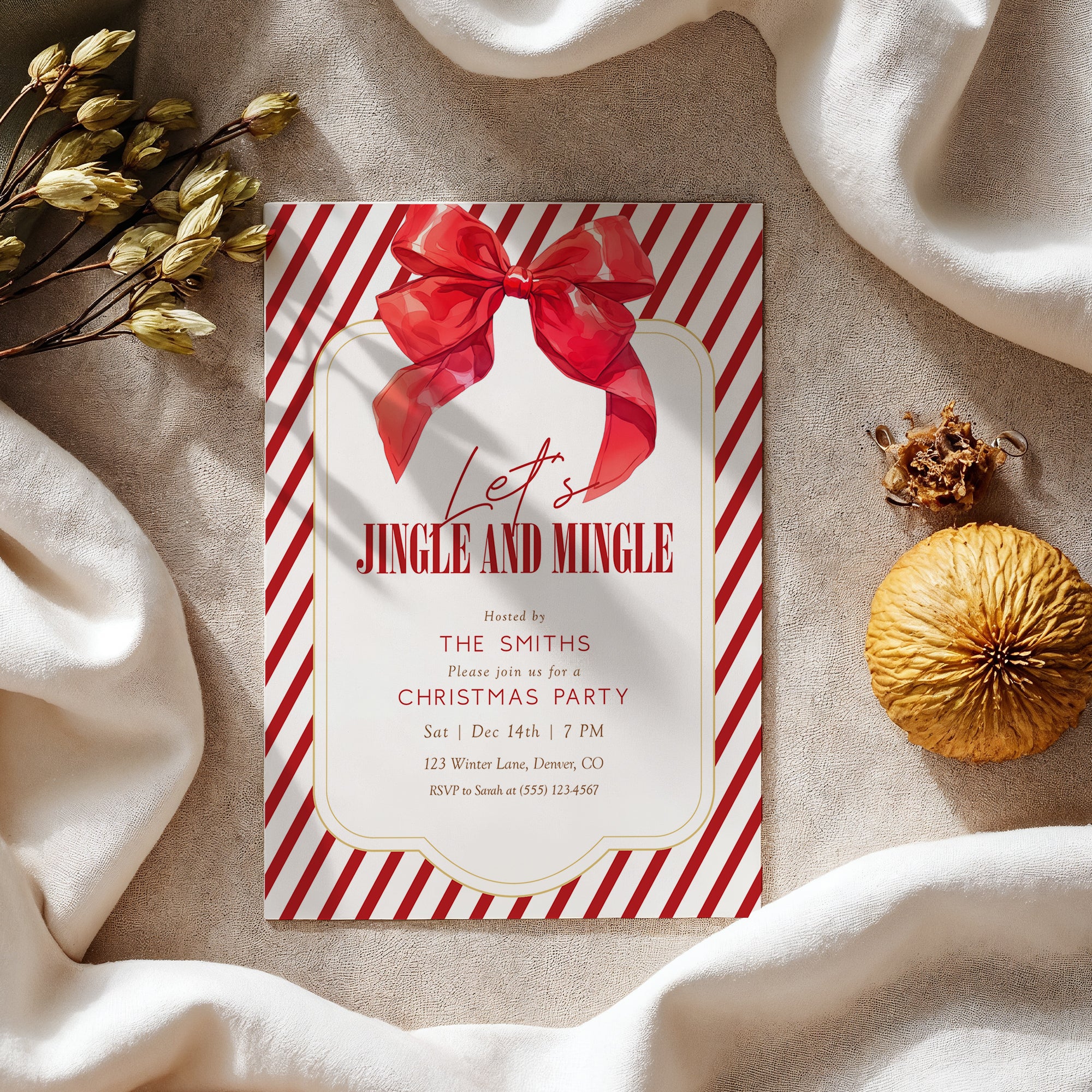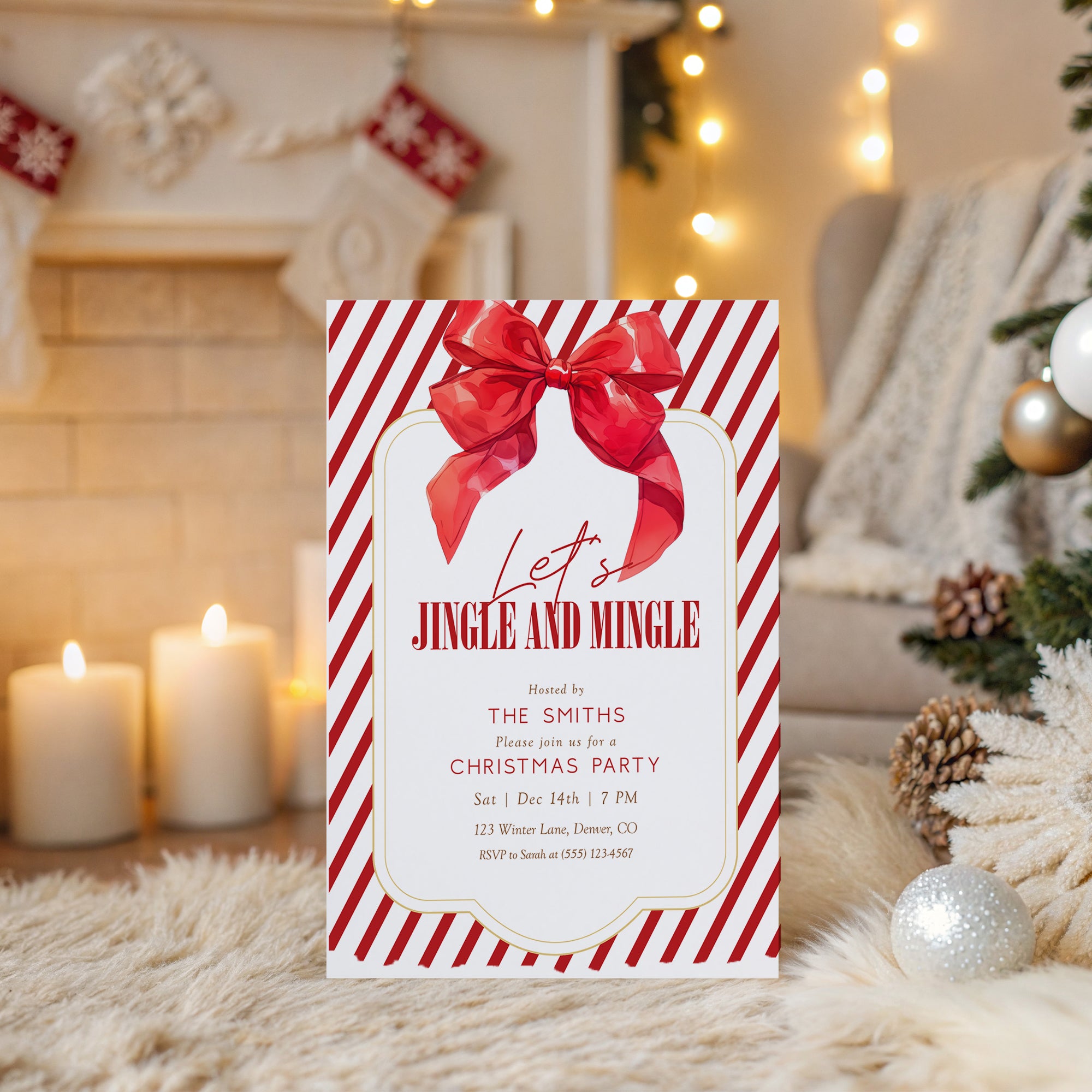 Celebrate the season with our Red Bow Coquette Christmas Invitation! Perfect for your Jingle and Mingle winter holiday party, this elegant invite sets the tone for a Merry Christmas dinner, brunch, or cocktail gathering. Download this stylish digital invitation instantly and spread holiday cheer at your festive celebration. Easy to customize and print, it’s the perfect way to invite your loved ones to join in the holiday fun. Get ready for a memorable winter gathering! 🎄✨