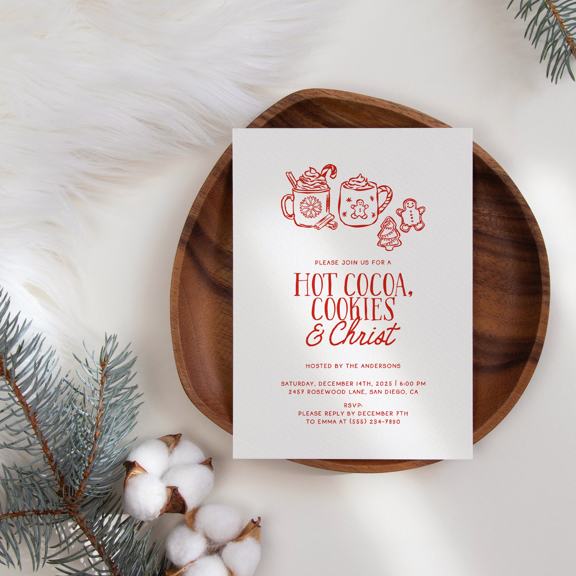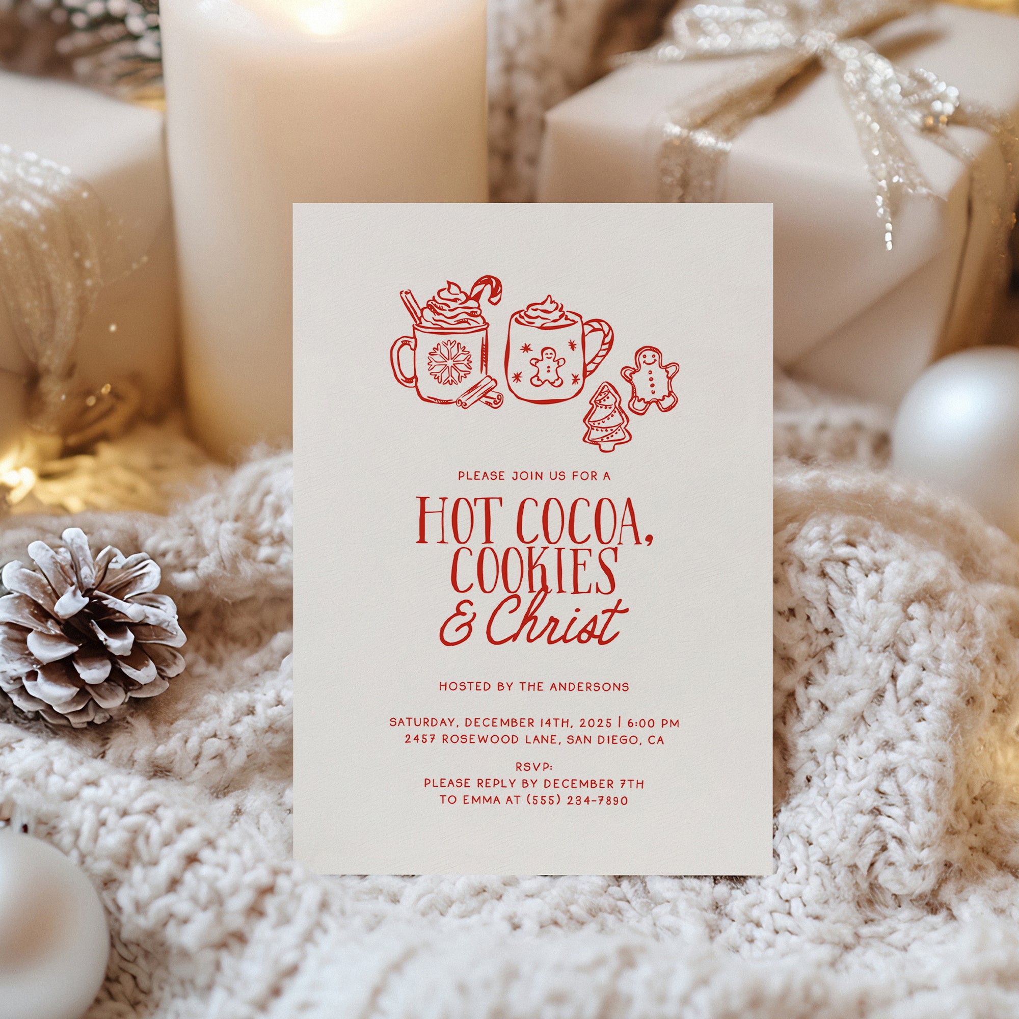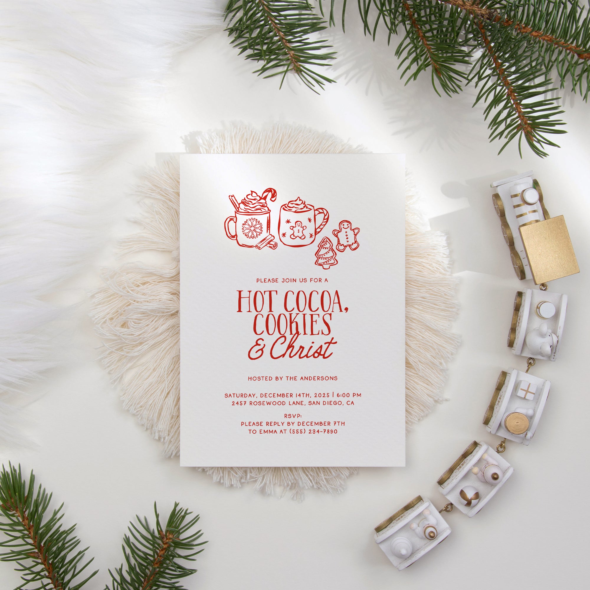 Get ready for a delightful celebration with our Whimsical Hot Cocoa, Cookie, & Christ Christmas Party Invite! This charming, editable digital download sets the perfect festive tone for your holiday fun. Celebrate the joy of the season with a Christian-themed party that friends and family will love. Easily customize the invitation to fit your event details! Make your Christmas party unforgettable with this unique invite—download it instantly and send it out today!