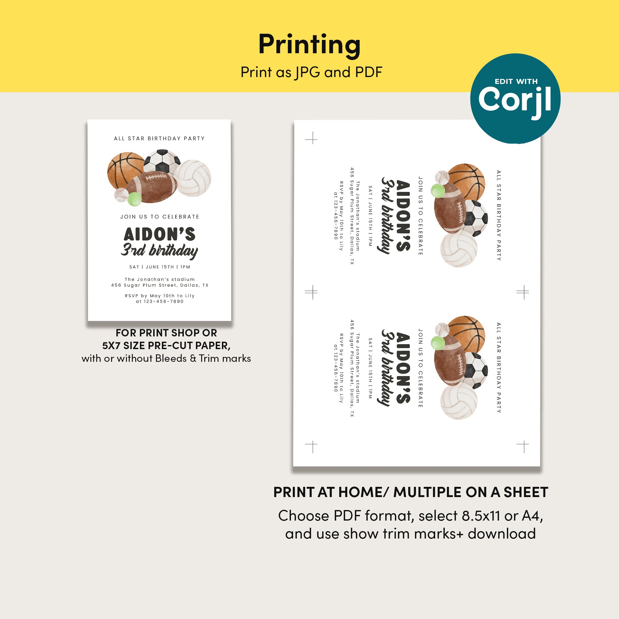 1. Edit text in Corjl, download & print yourself