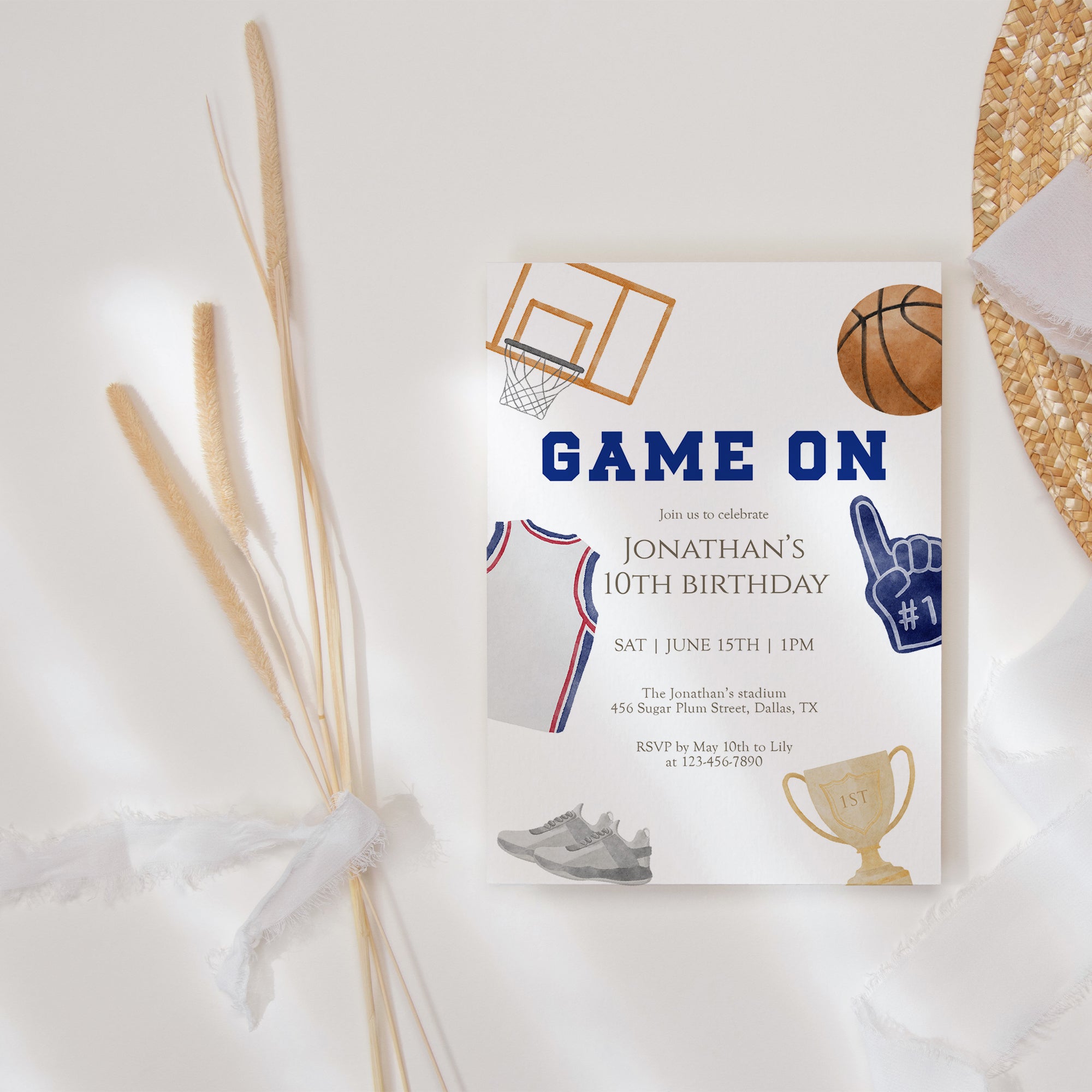 Basketball Game On 10th Birthday Invitation, Sports Birthday Invite Template, Editable Corjl 0333