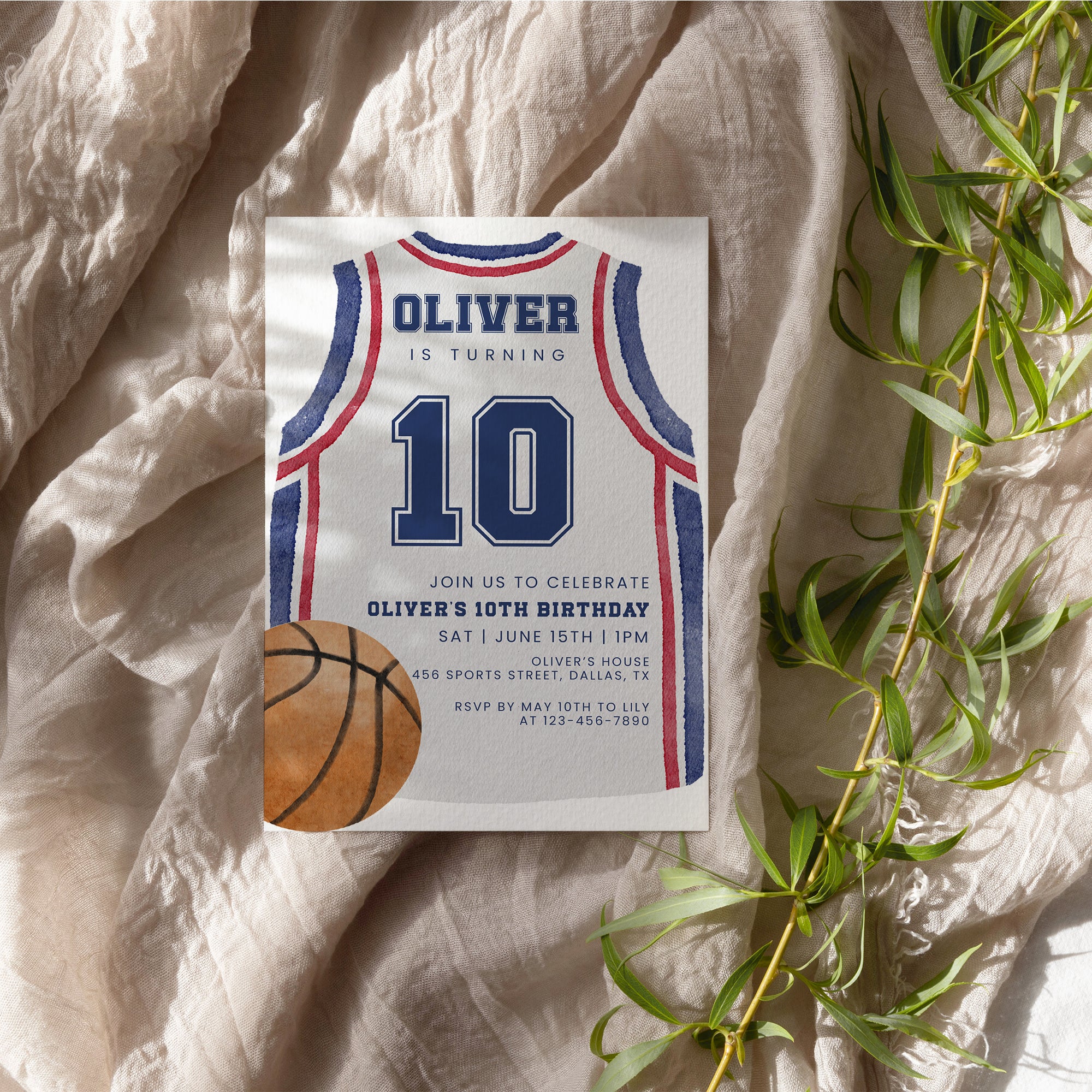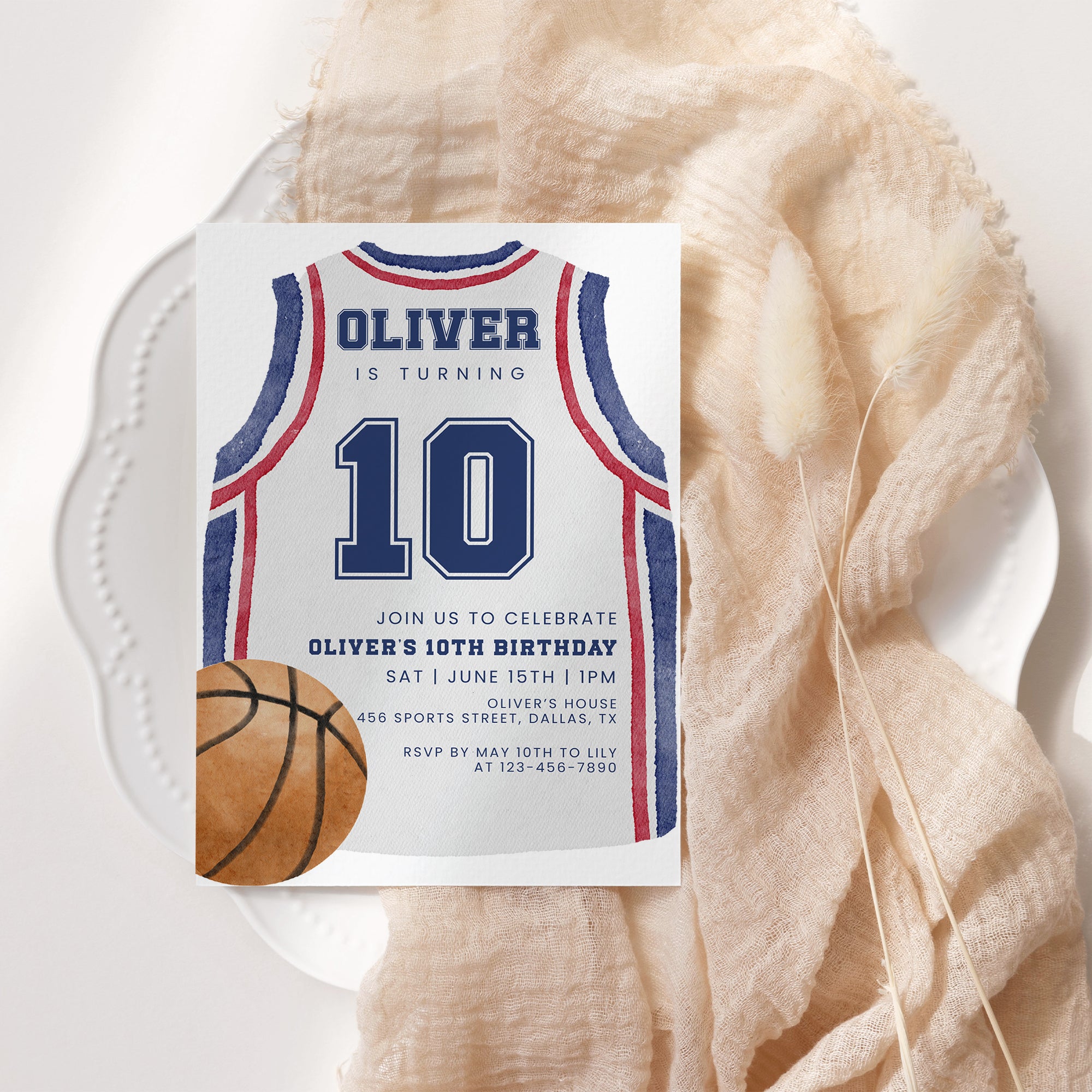 Basketball Jersey 10th Birthday Invitation, Sports Game Day Bday Party Invite, Editable Template 0333