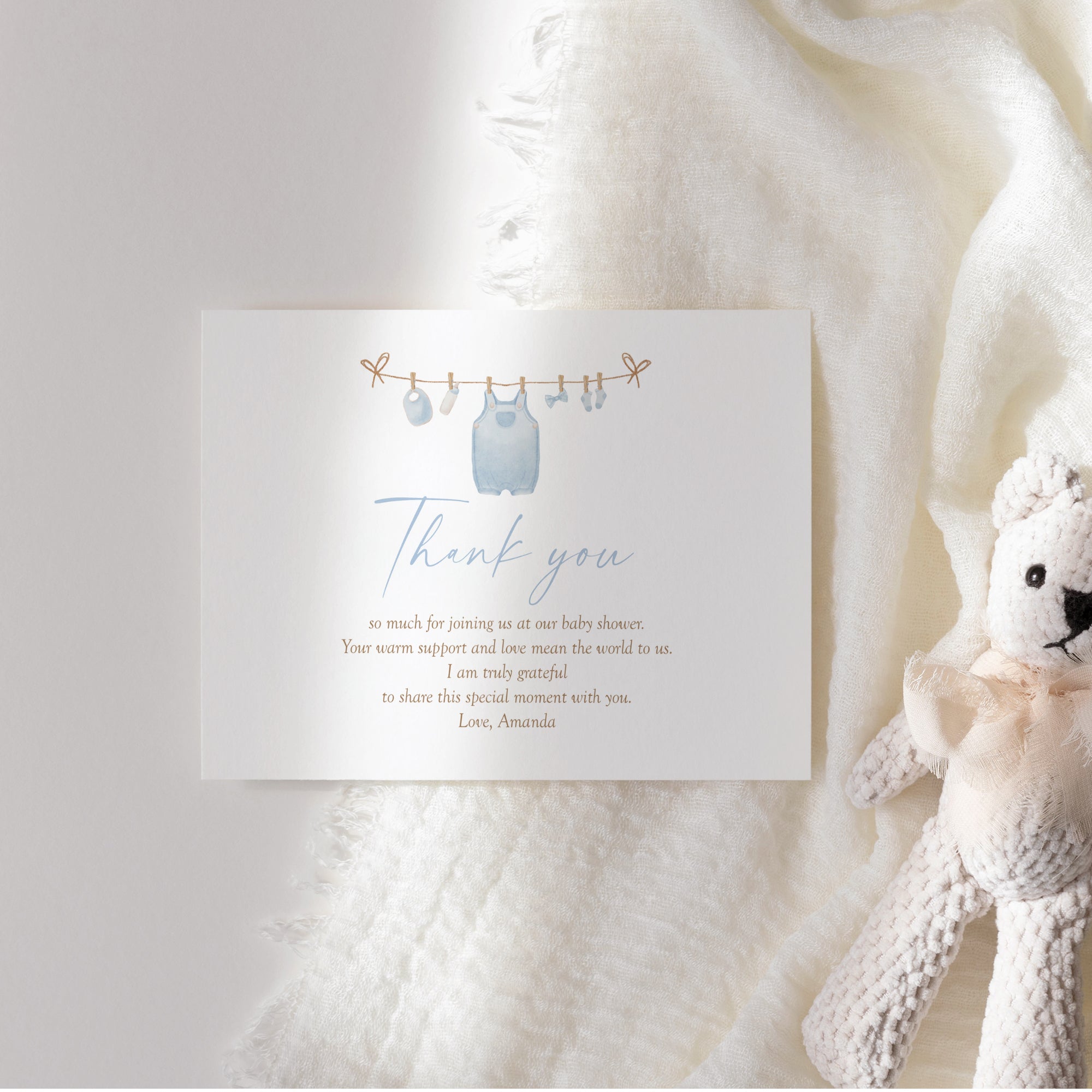 Celebrate your little one's arrival with our Blue Baby Shower Boy Invitation Bundler! This elegant, minimal design features beautiful watercolor accents, perfect for setting the tone for your special event. Included in the set are adorable Books for Baby cards, a fun Baby Raffle ticket, and a heartfelt thank you card to express your gratitude. Enjoy the convenience of a digital download—print and share from home! Make your baby shower unforgettable with this delightful bundle!