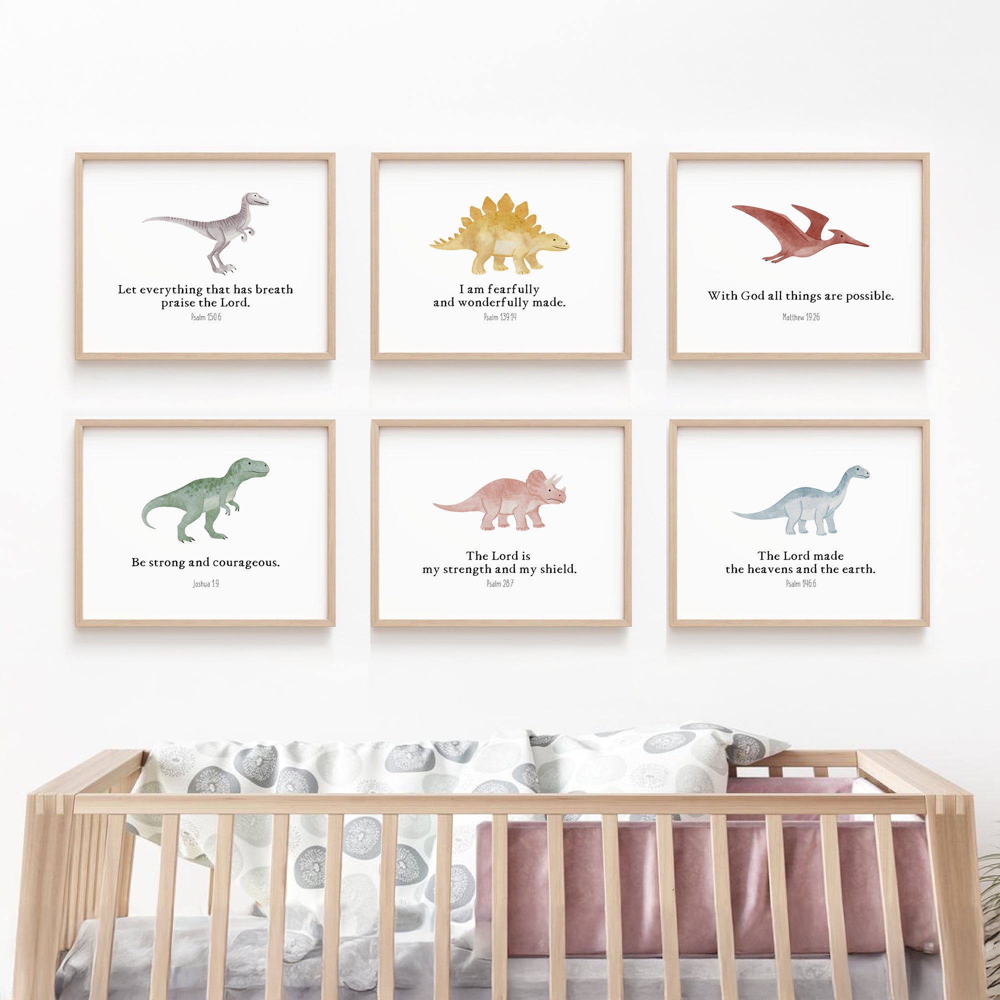 Dinosaurs Kids Bible verse set of 6 wall art print 07-349