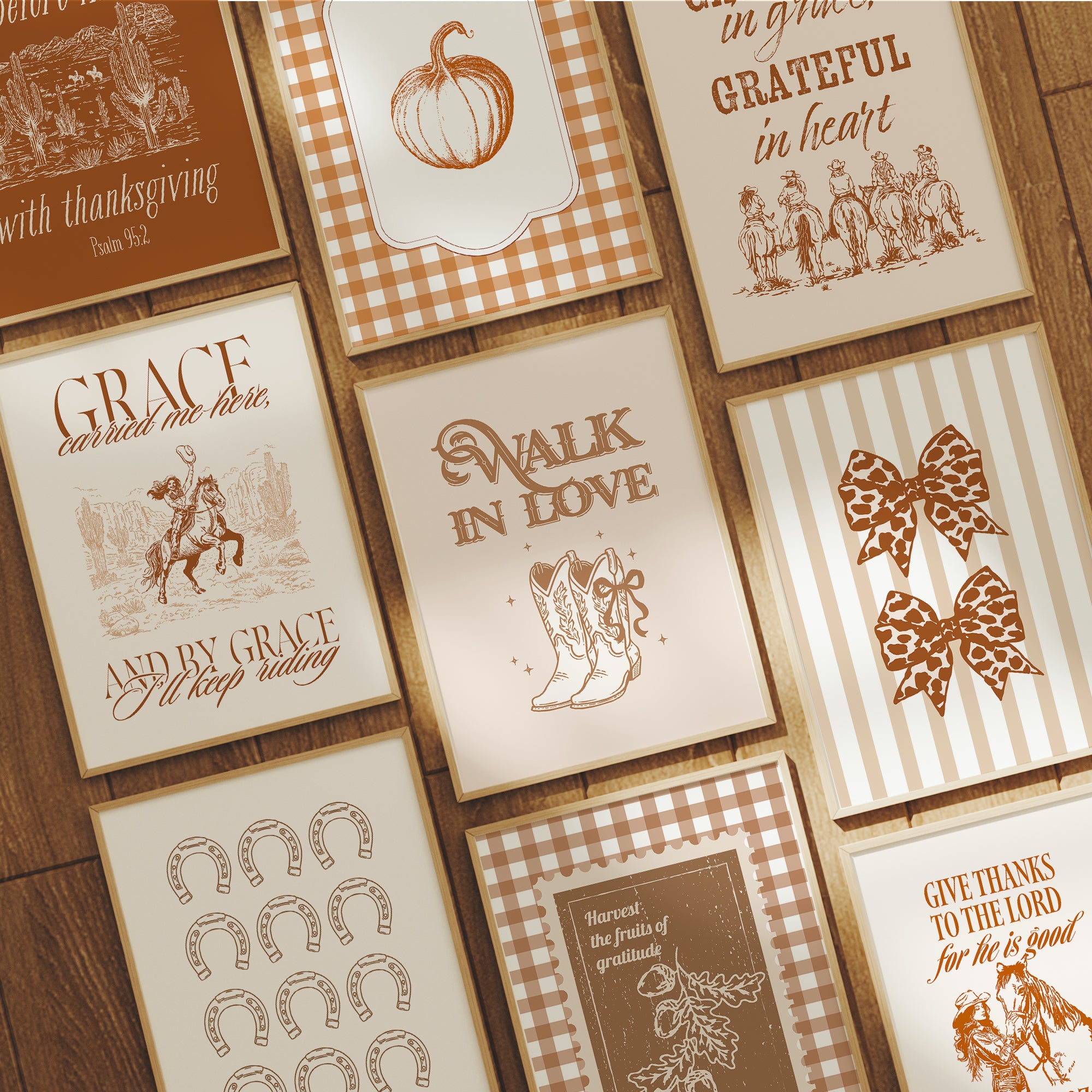 • Load image into Gallery viewer, Fall Western Cowgirl Thanksgiving Bible Verse Wall Art Set 02-327 (Choose your print)