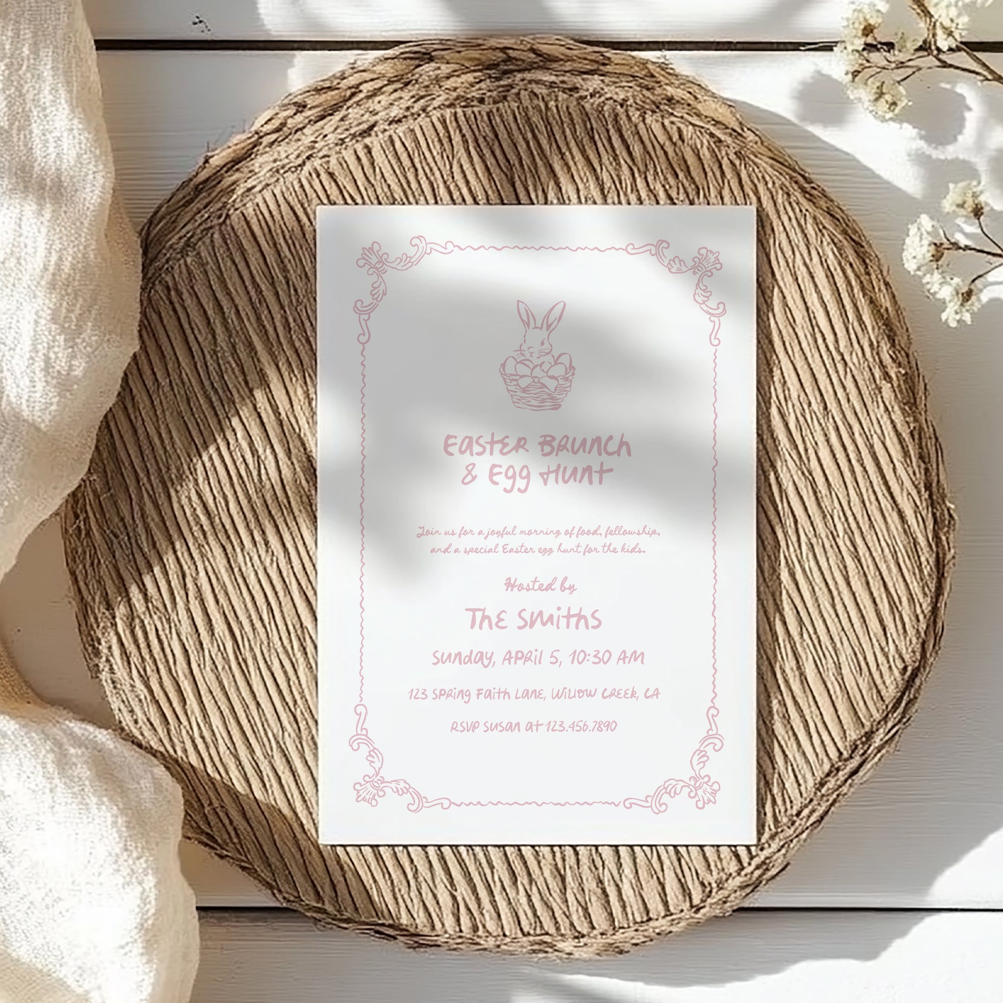 This design is ideal for Easter brunch gatherings that include an egg hunt for children, whether hosted at home, church, or a community space.