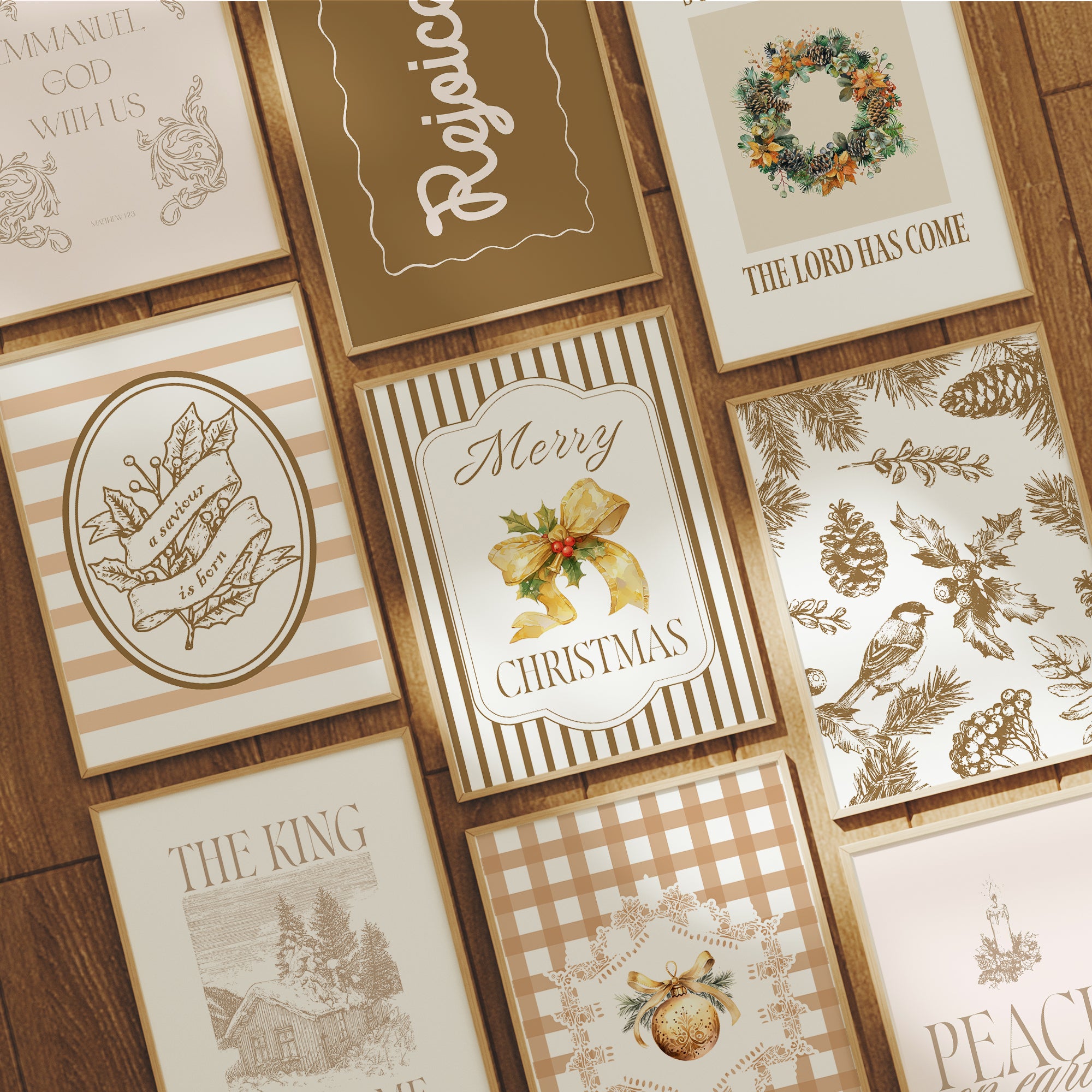 Neutral Yellow Set of 9 Christian Christmas Wall Art Bundle 13-225