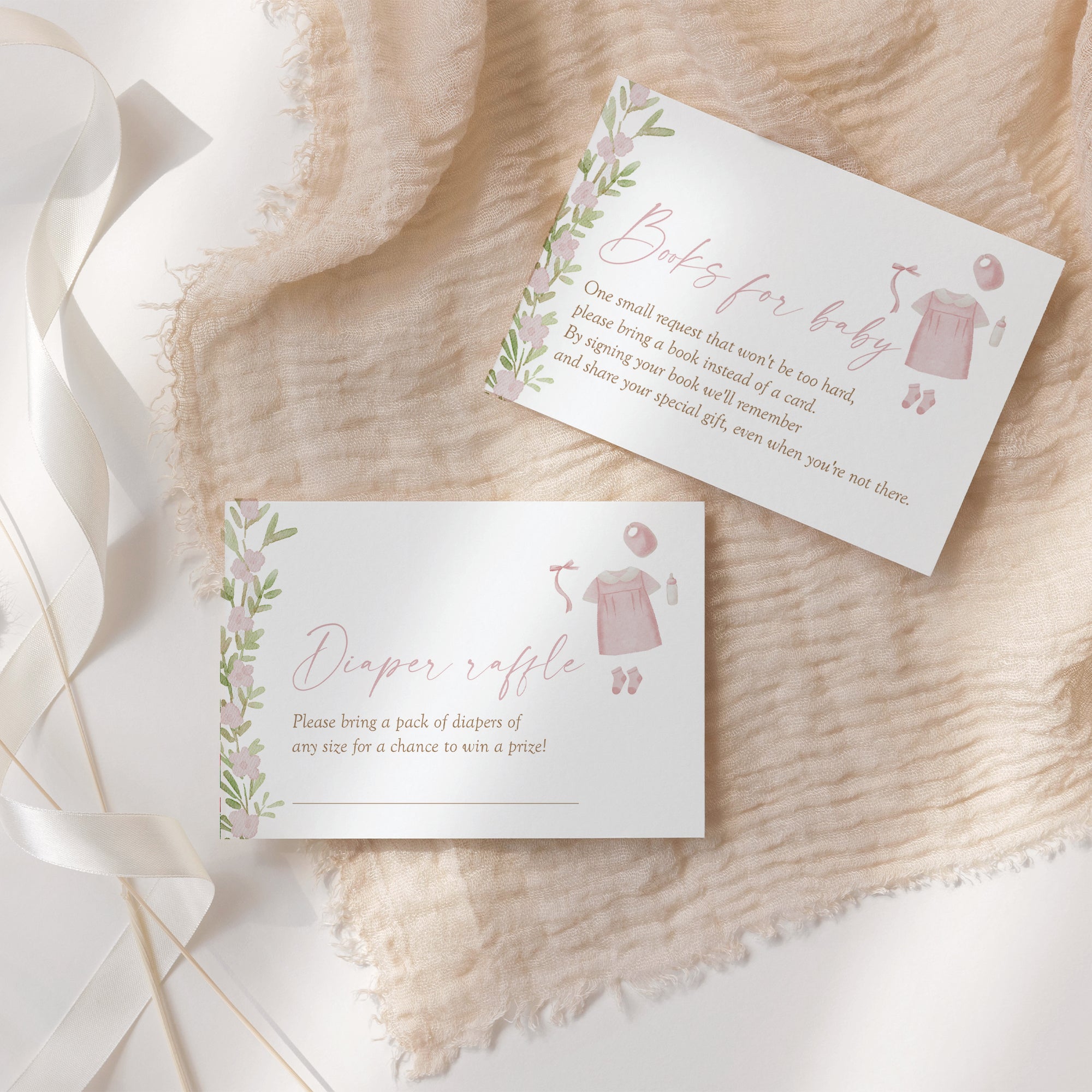 Celebrate your little one's arrival with our Pink Baby Shower Girl Invitation Bundler! This elegant, minimal design features beautiful watercolor accents, perfect for setting the tone for your special event. Included in the set are adorable Books for Baby cards, a fun Baby Raffle ticket, and a heartfelt thank you card to express your gratitude. Enjoy the convenience of a digital download—print and share from home! Make your baby shower unforgettable with this delightful bundle!