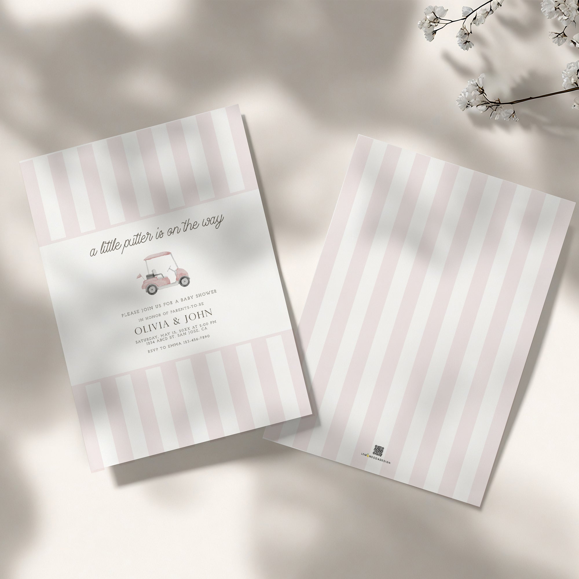 Elevate your baby shower celebration with our sophisticated pink golf-themed invitation template. Perfect for the golf-loving parents-to-be, this elegant design combines refined aesthetics with playful golf motifs. Simply edit the details to create a personalized invitation that sets the perfect tone for your special event.