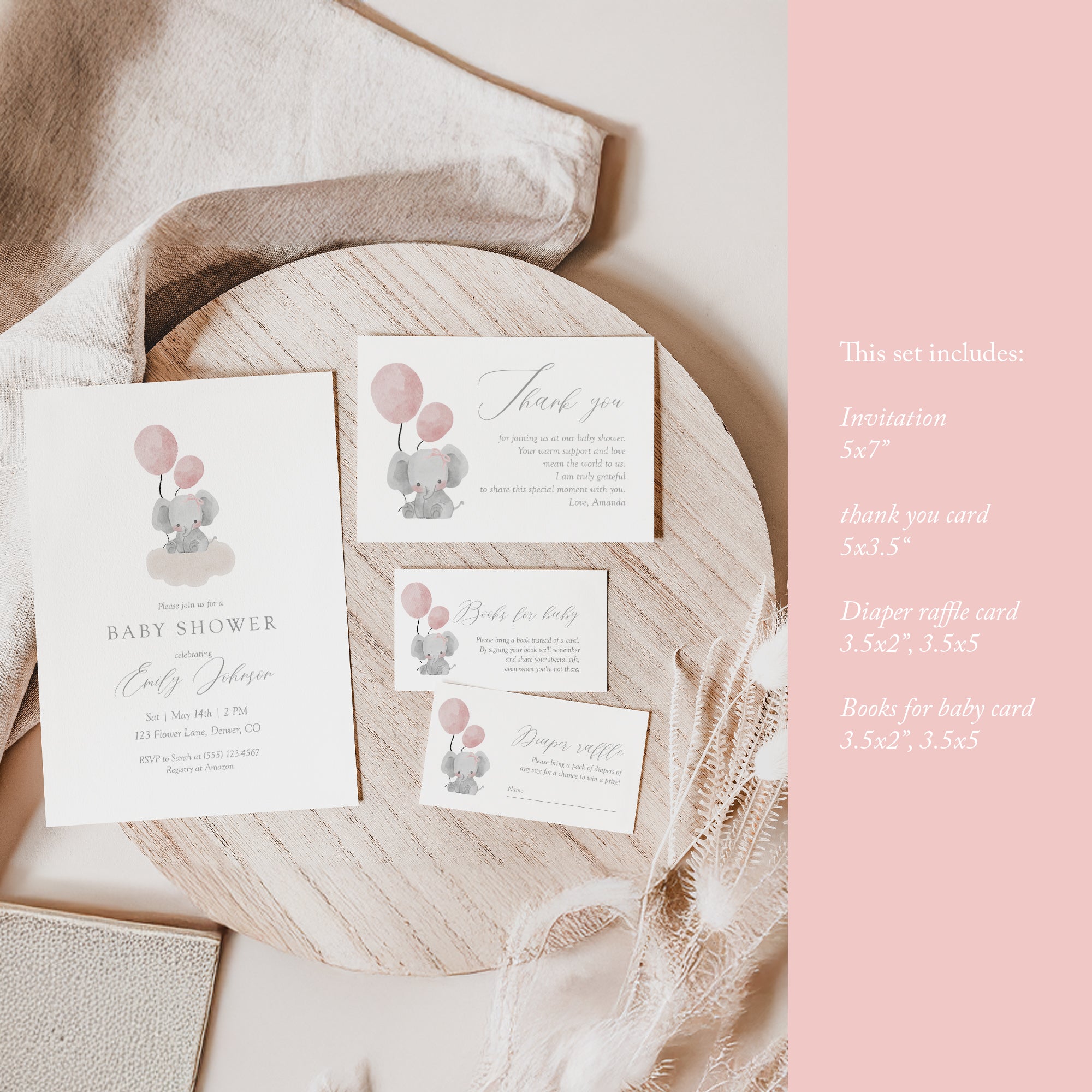 Pink Elephant Baby Shower Invite Bundle (Digital Download) 2031