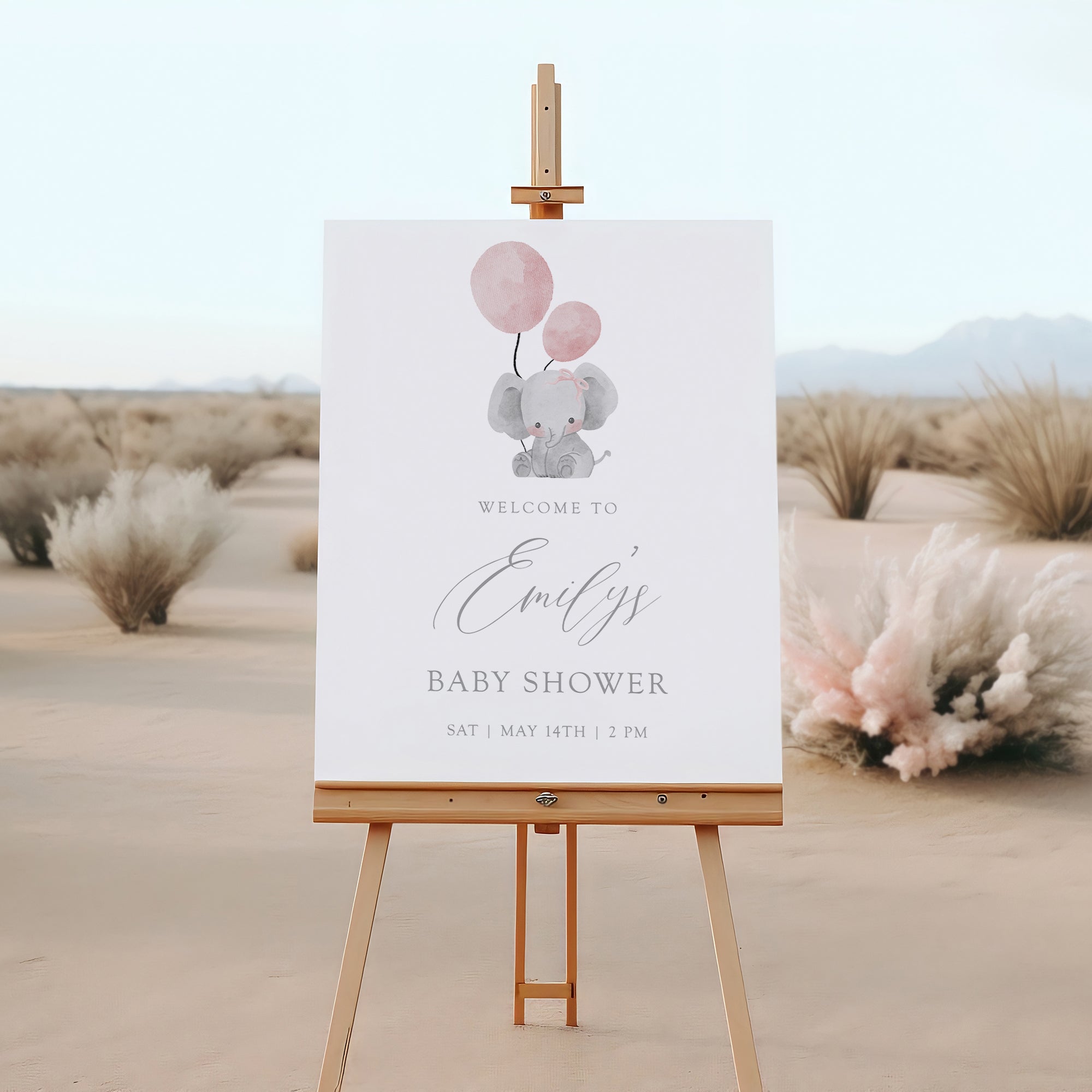 Welcome your little one with our adorable Pink Elephant Holding Pink Balloon watercolor hand-drawn art! This cute and minimal baby shower welcome sign template is perfect for celebrating your baby Girl. Easy to use as a digital download, you can print and display it at your baby shower for a charming touch. Make your event memorable with this delightful design that captures the joy of welcoming a new life. Download today and create a beautiful atmosphere for your celebration!