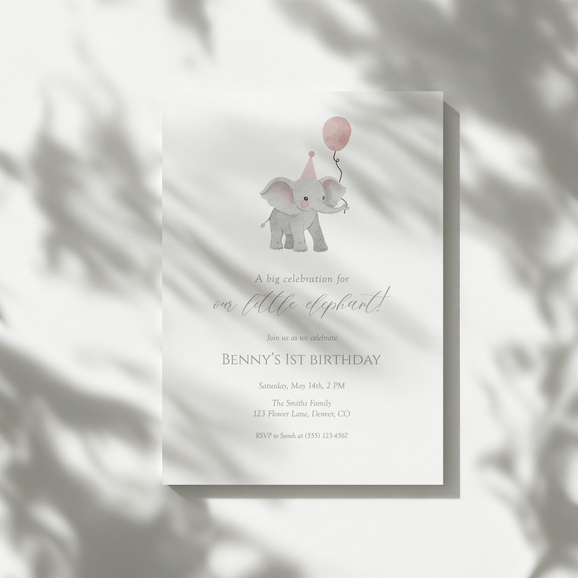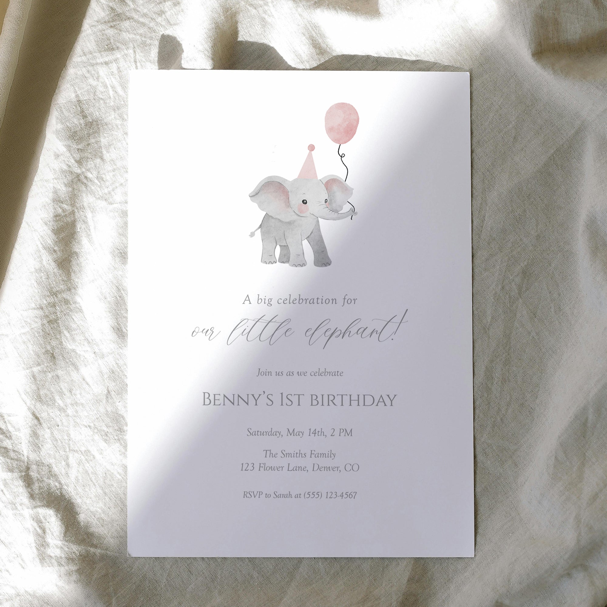 Celebrate your little peanut's milestone with our adorable Pink Elephant 1st Birthday Invite! This cute and minimal design is perfect for your little girl's special day. Easily customize it with our editable template—just download, edit, and print! Ideal for a delightful birthday party, this digital download makes inviting family and friends a breeze. Capture the joy of turning one with this charming invite. Get ready for an unforgettable celebration!