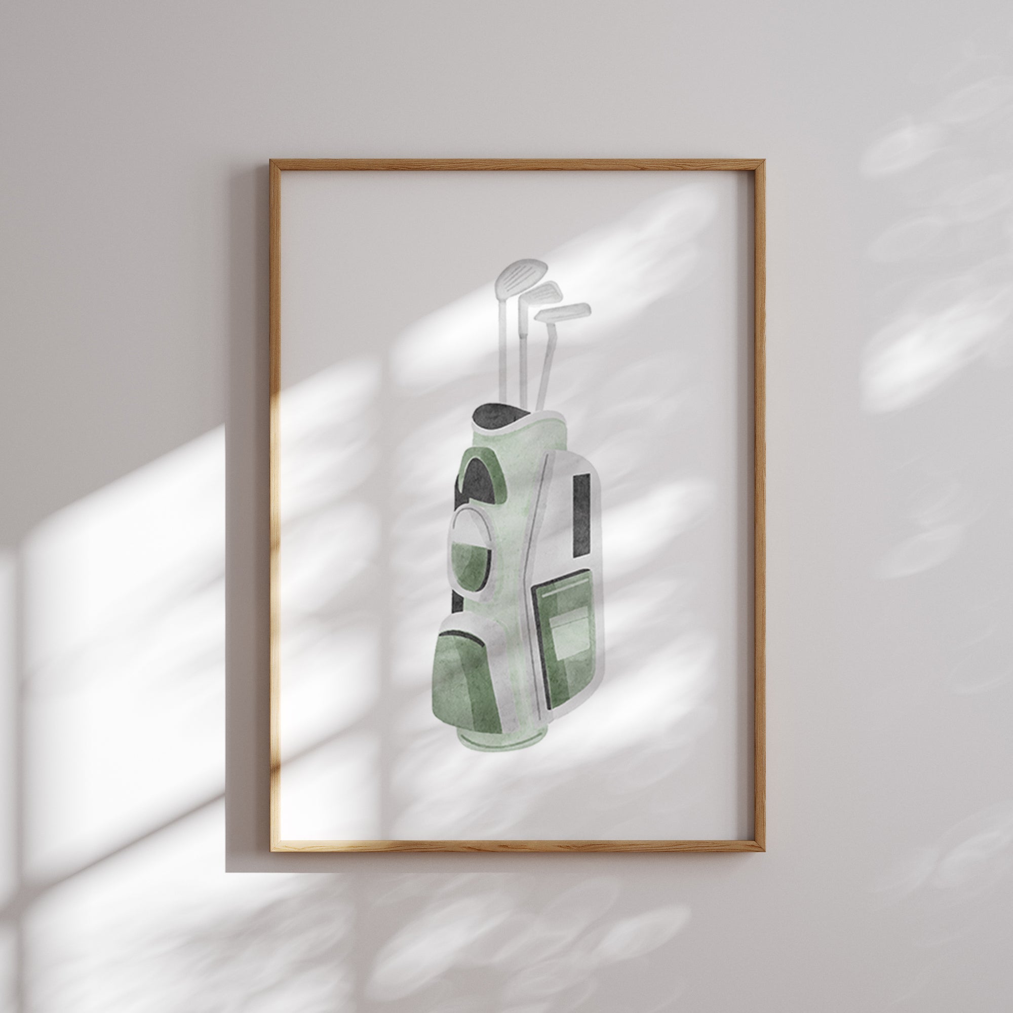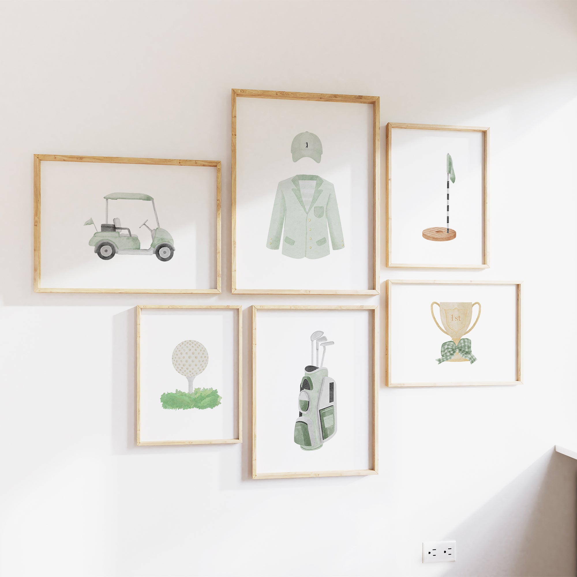 Sage green golf watercolor hand drawn gallery wall art prints 07-27119