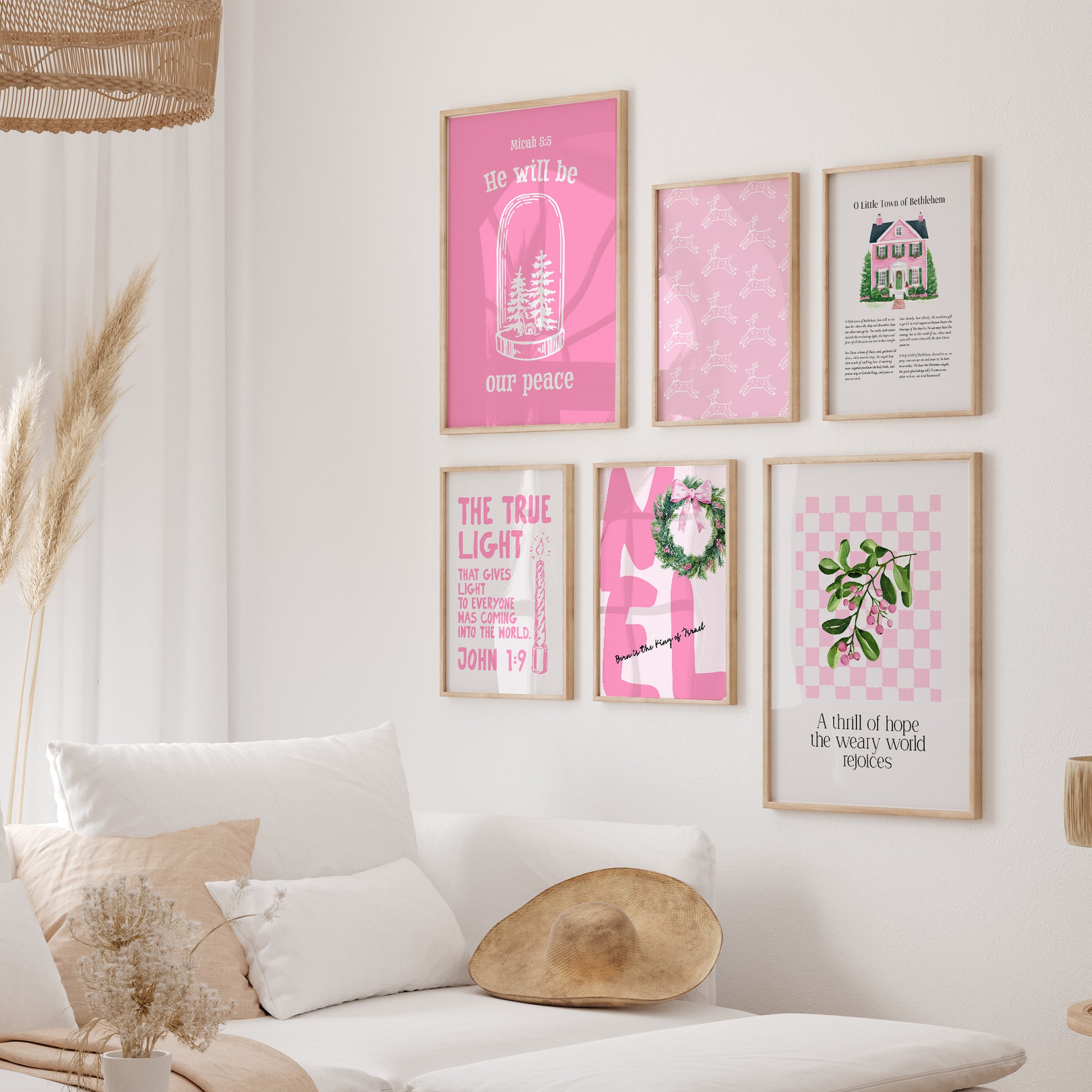 Set of 6 Pink Christian Christmas Bible Verse Wall Art Prints 13-213
