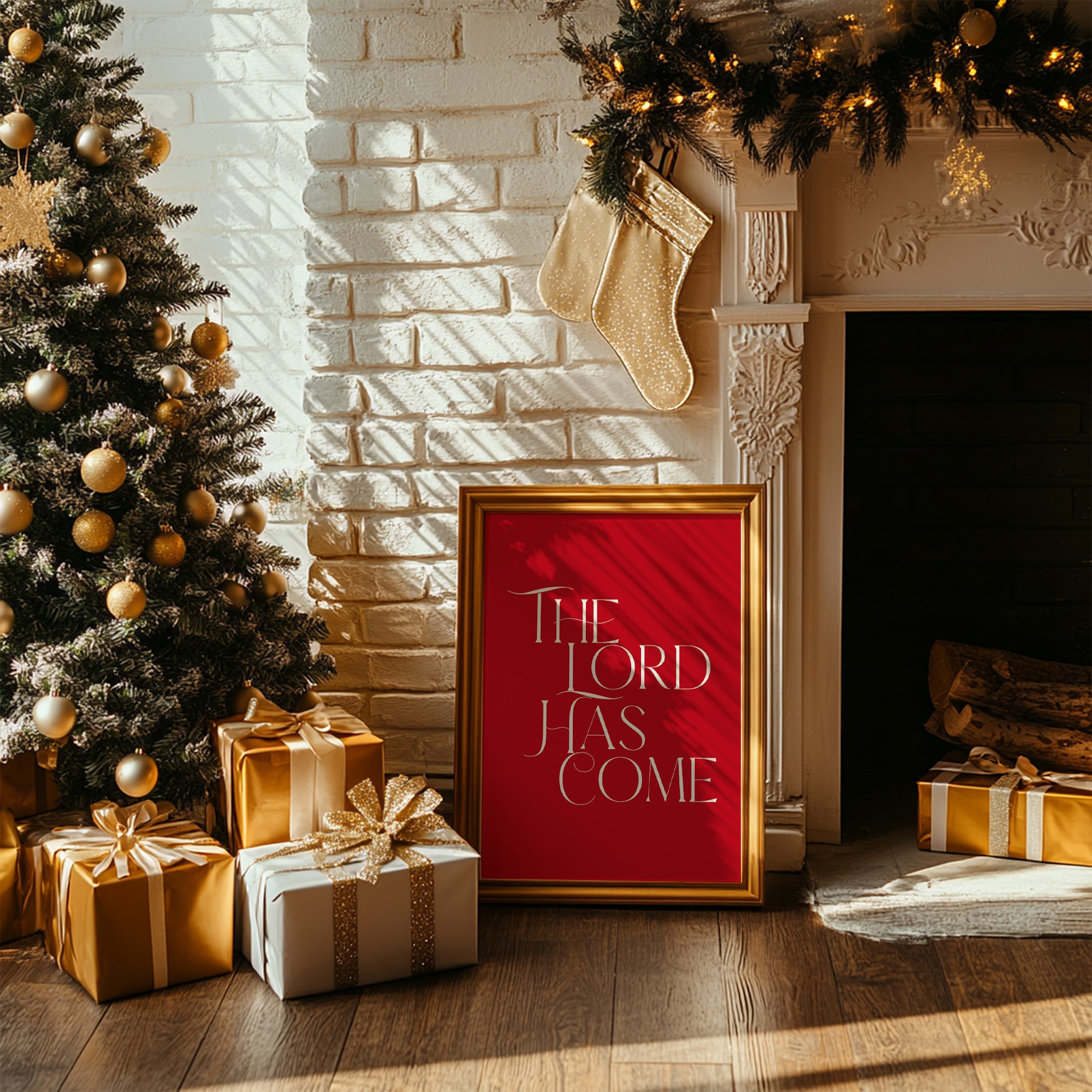 Set of 6 Red Green Christian Christmas Bible Verse Wall Art Bundle 13-221