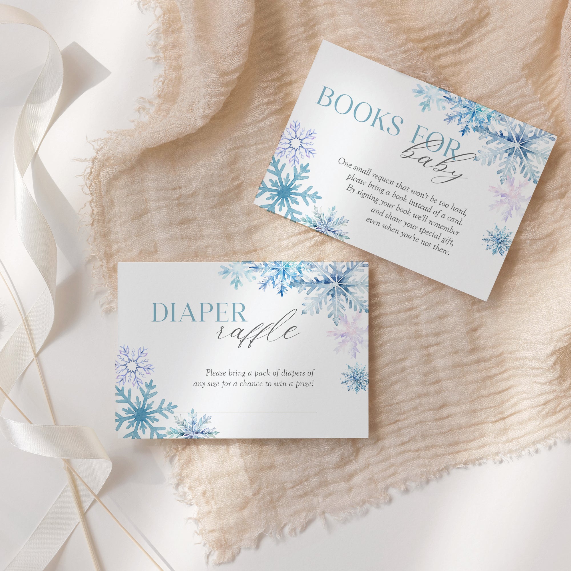 Snowflake Winter Baby Shower Invitation Set, Christmas Baby Shower Mini Bundle Printable, Holiday Baby Shower Invite Diaper Raffle Books for Baby 2024