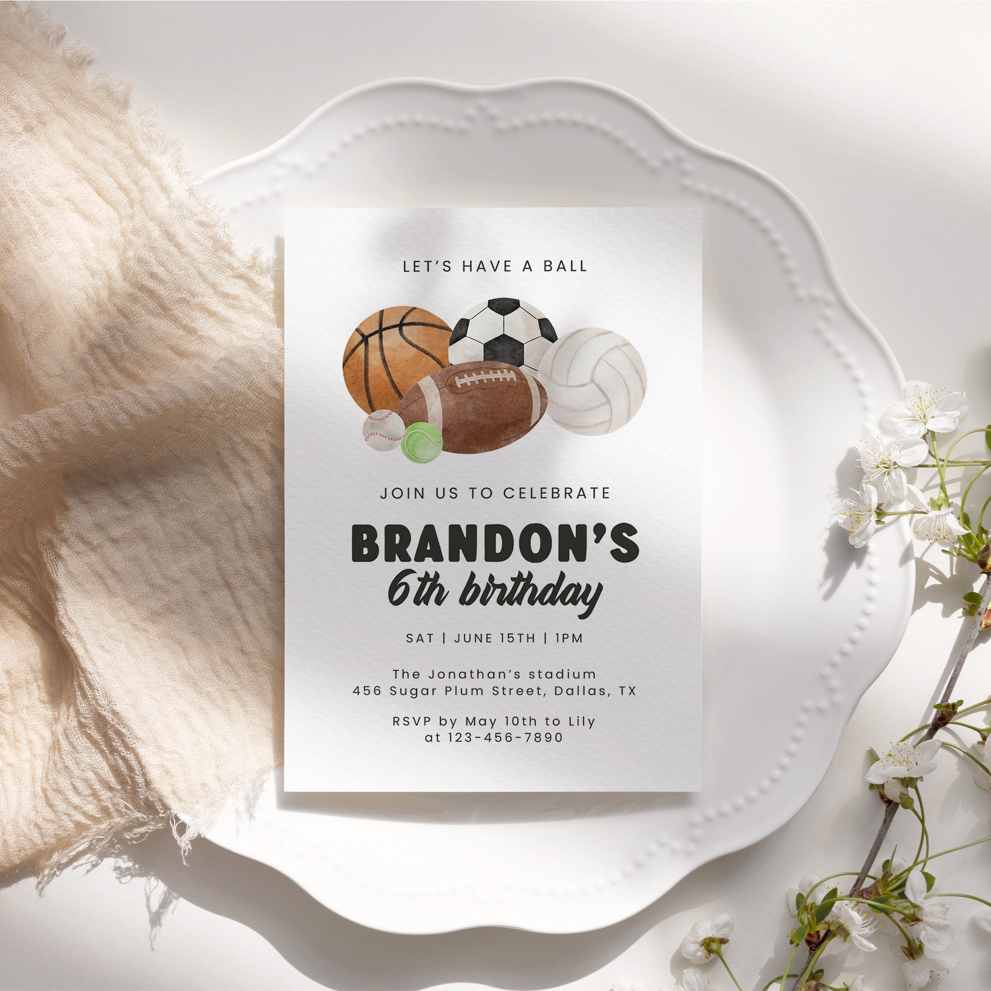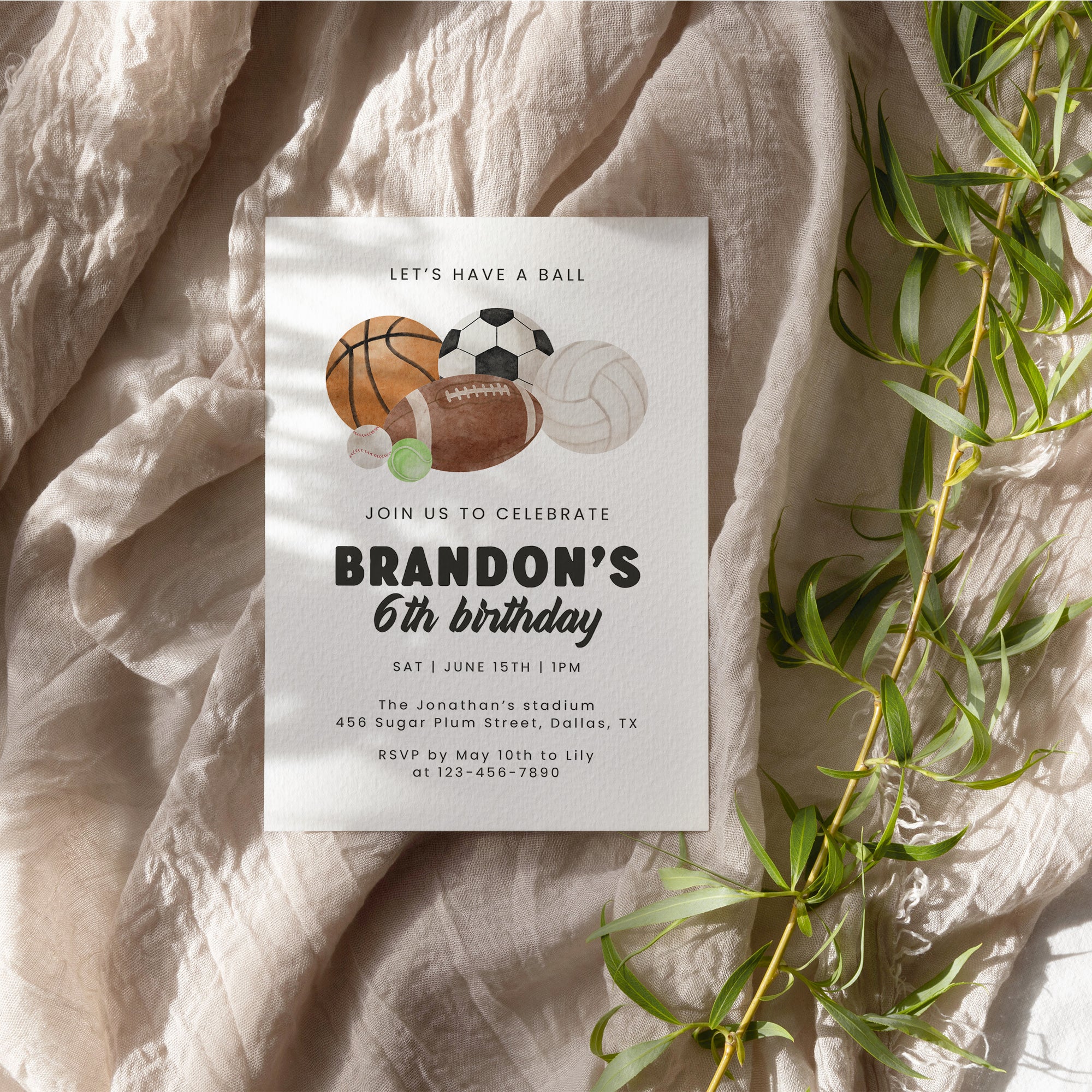 Sports Birthday Invitation for Boys Lets Have a Ball Basketball Baseball Football Party Invite 0334