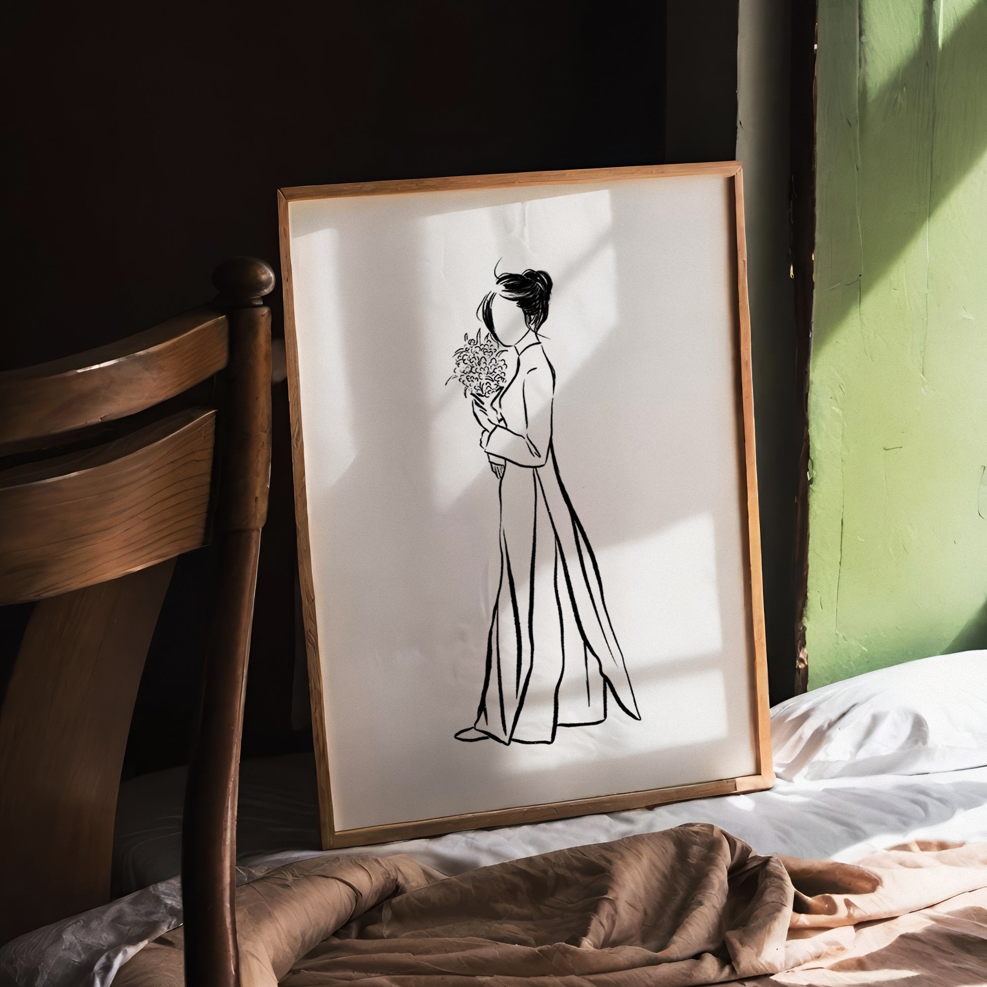 • Load image into Gallery viewer, Vietnam Adonai woman line drawing 1 art print 12-57