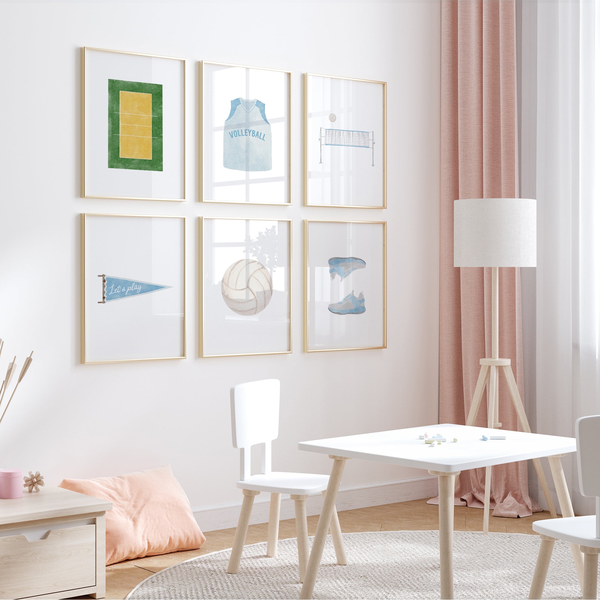 Watercolor Blue Volleyball set of 6 art print 07-30001