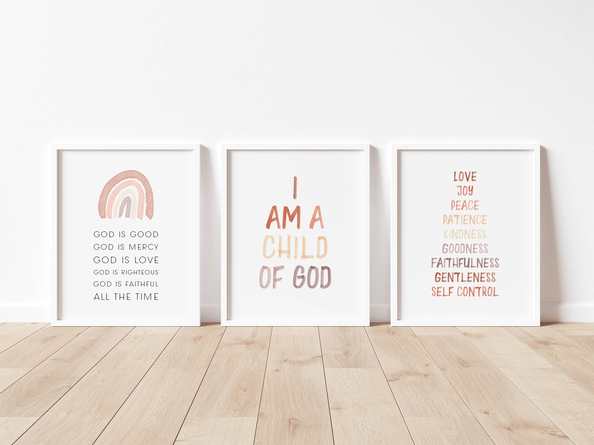 Watercolor neutral Christian kids bible verse set of 3 art prints 07-4042