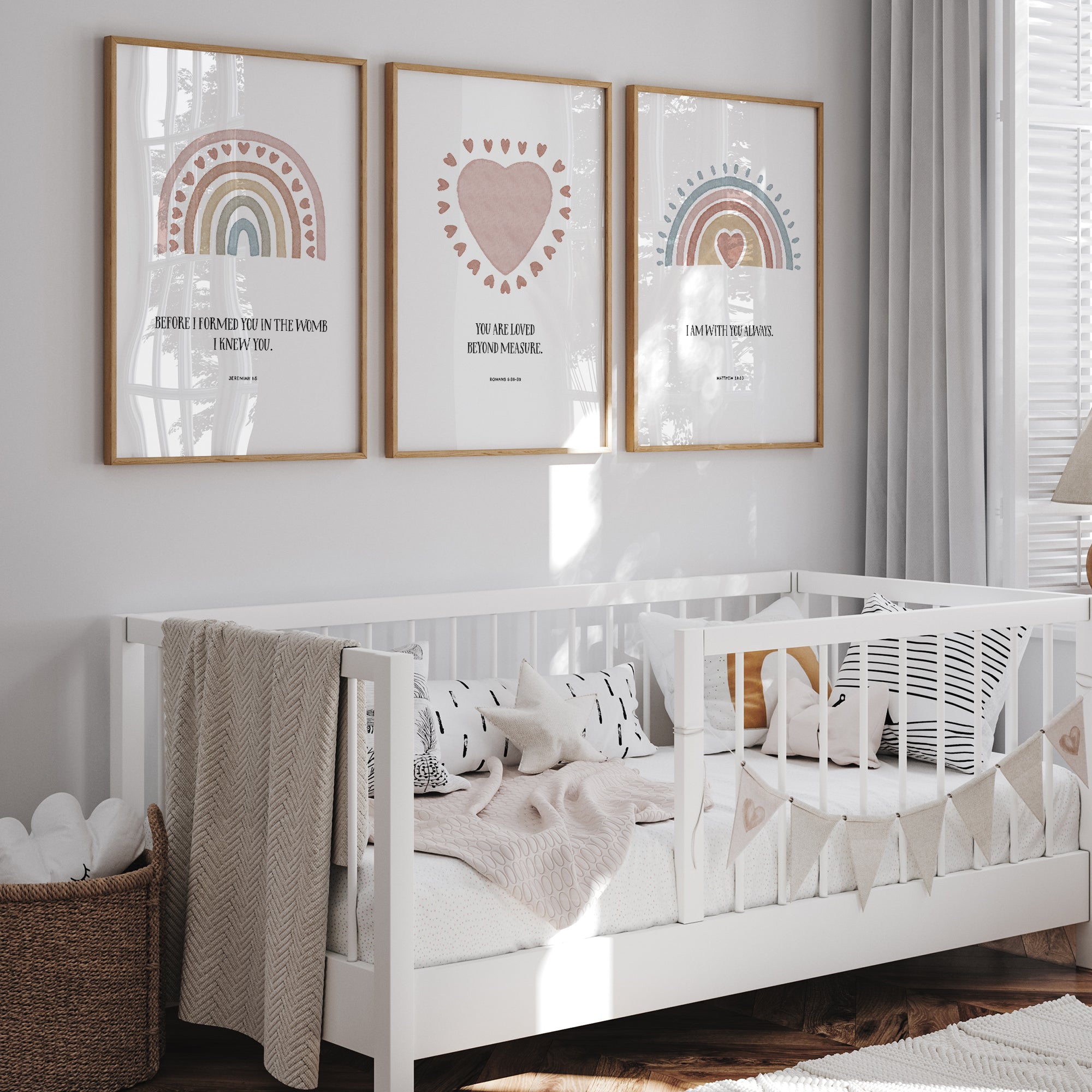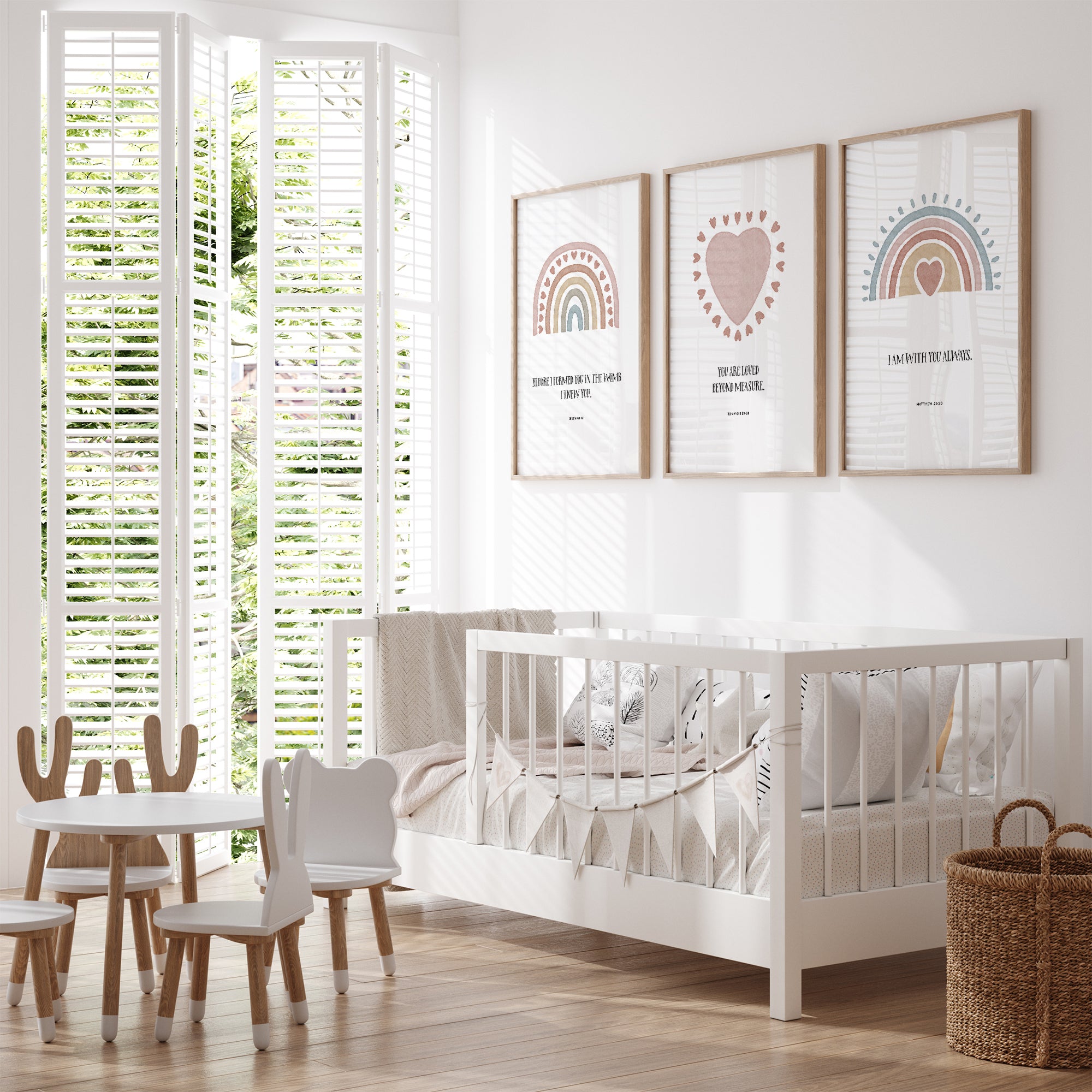 Watercolor pink boho rainbow heart set of 3 art prints 07-25201